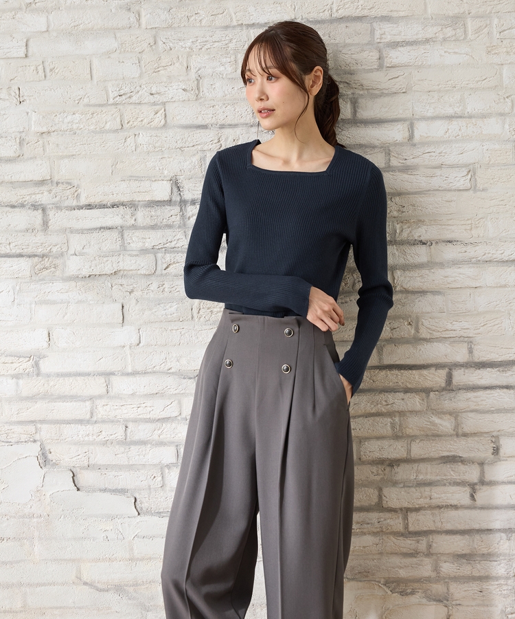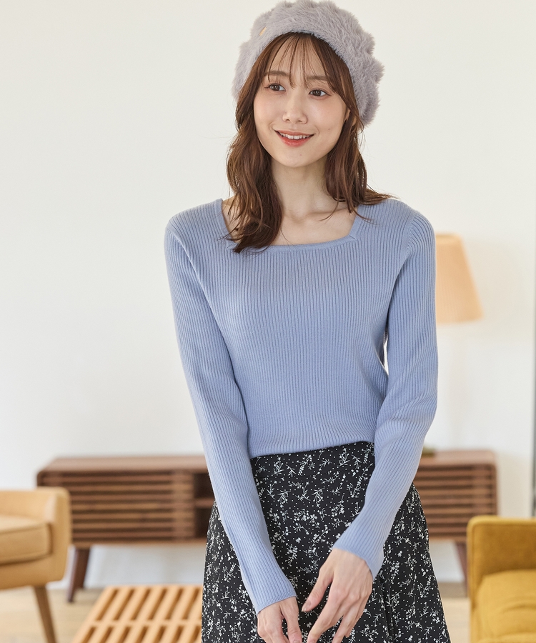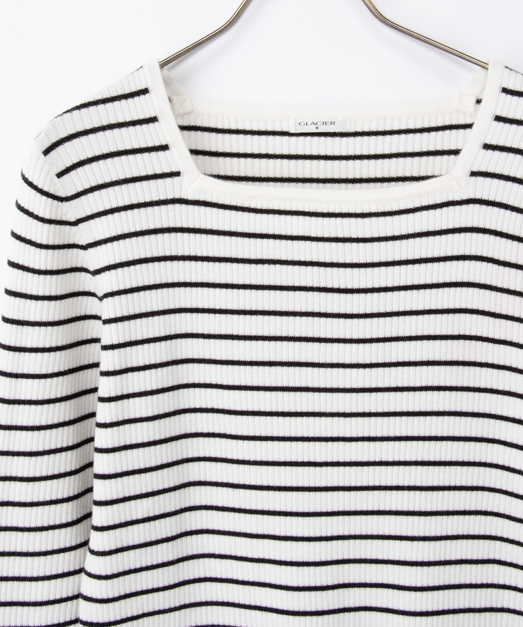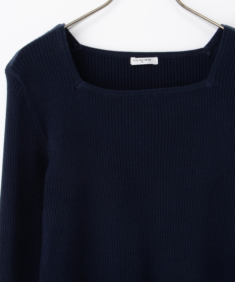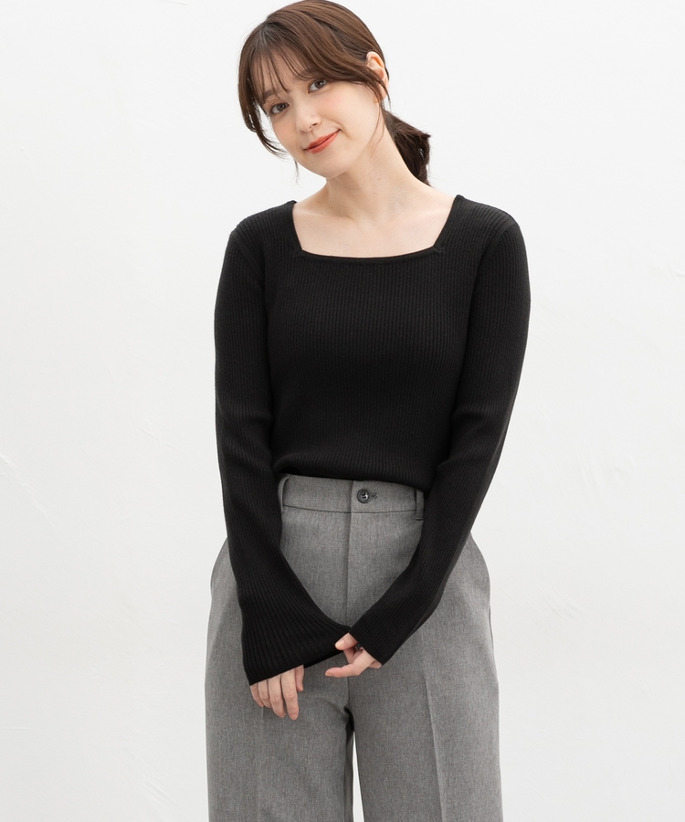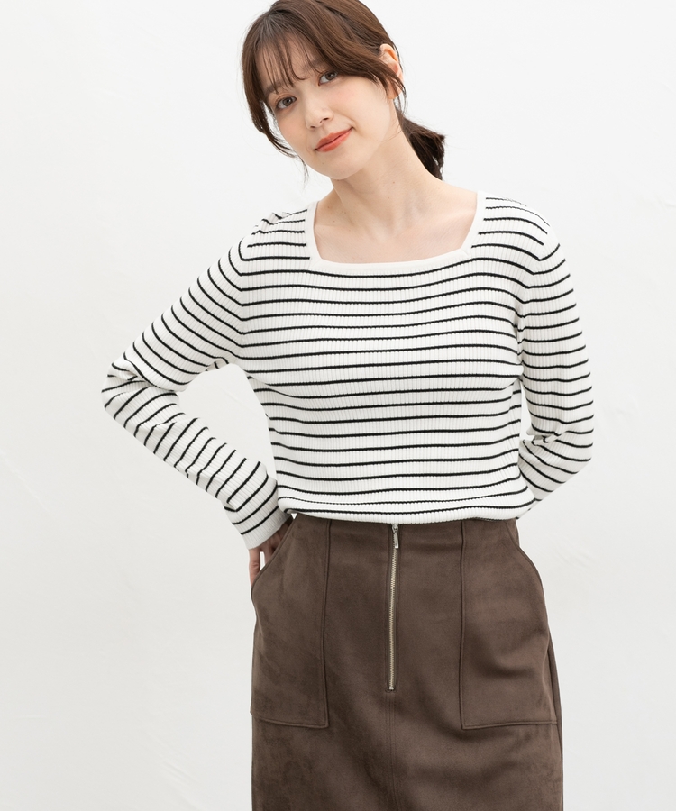 デコルテを華奢に見せて上品な印象のスクエアネックデザイン。