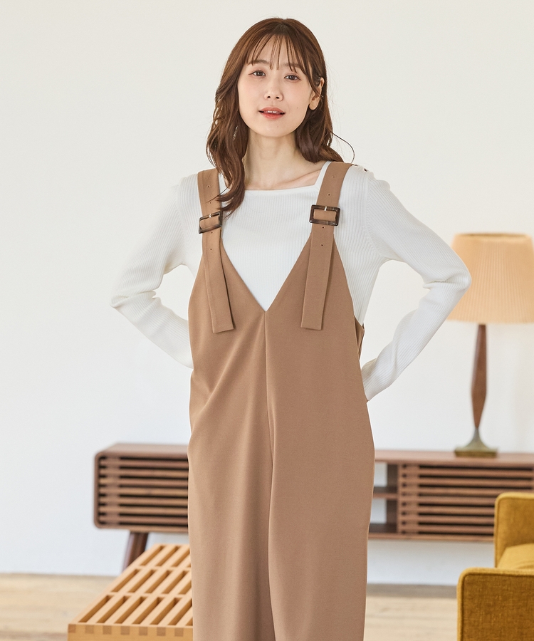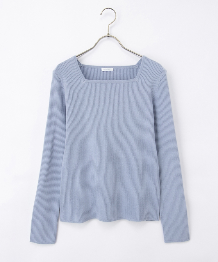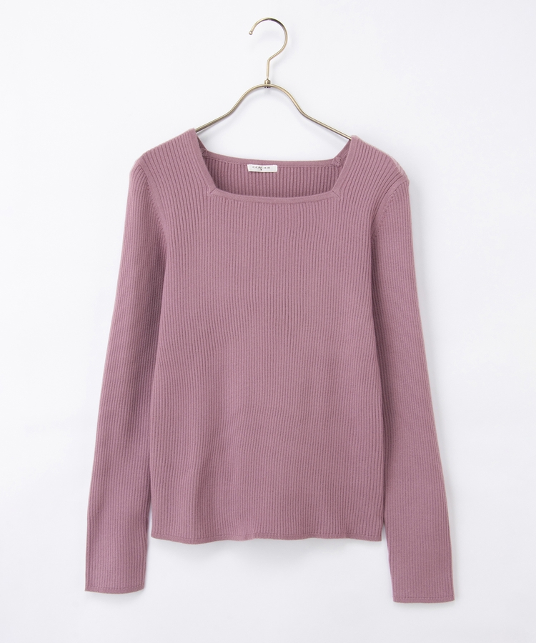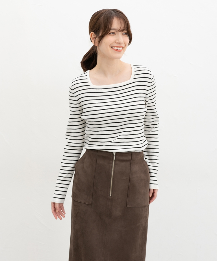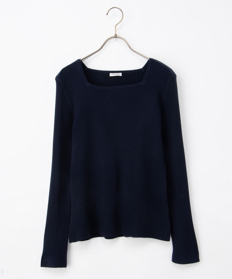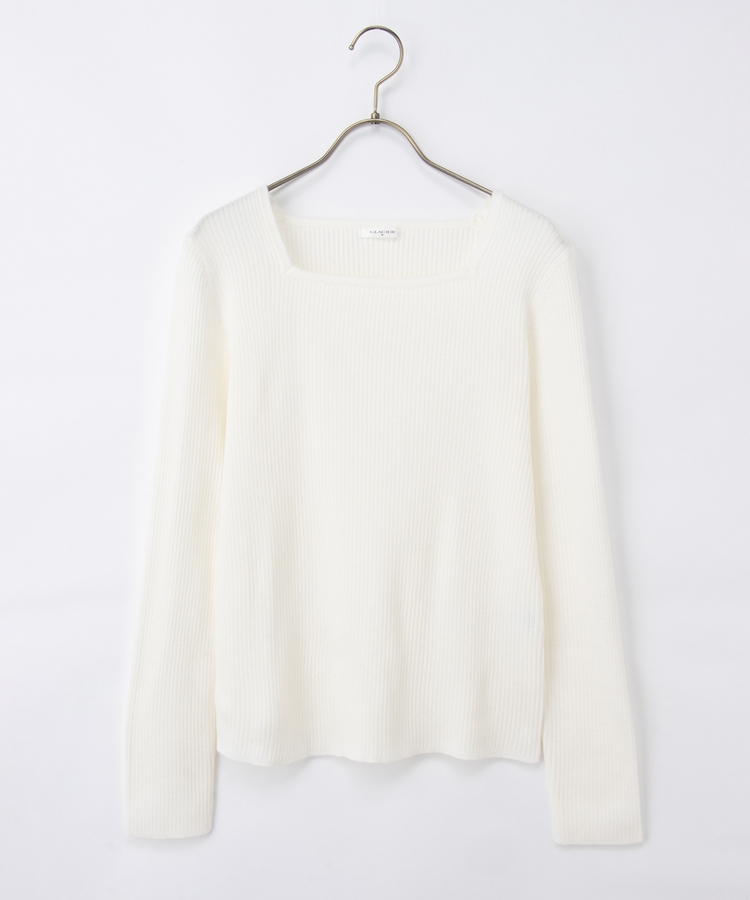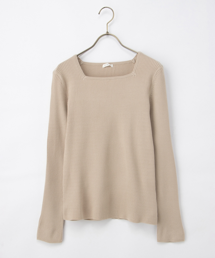 デコルテを華奢に見せて上品な印象のスクエアネックデザイン。