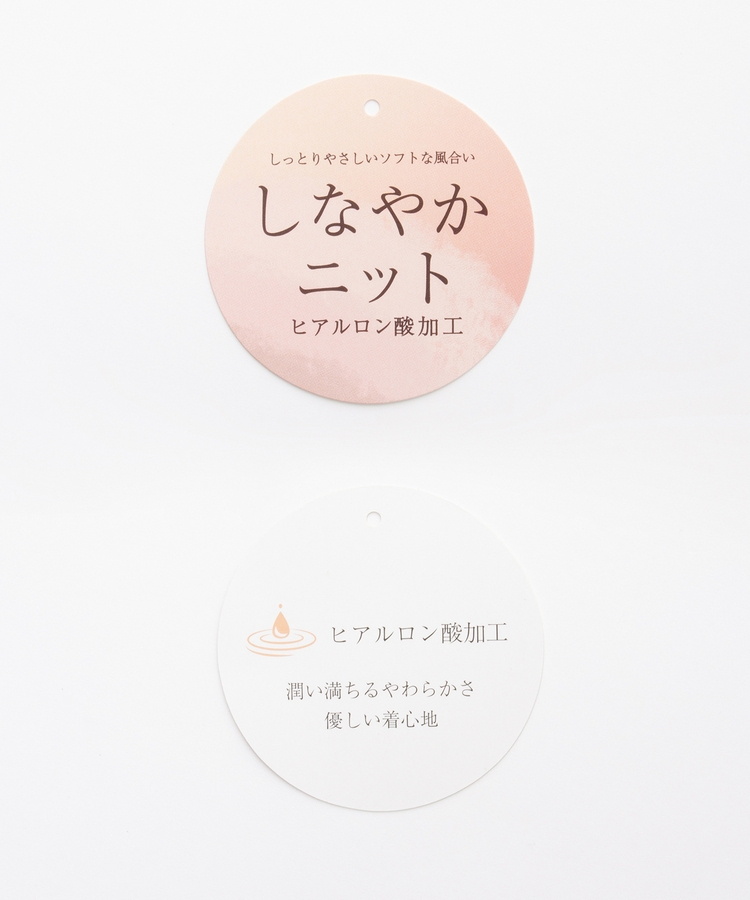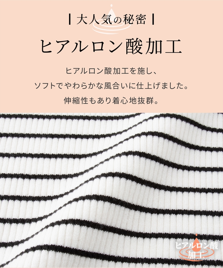 軽くてもちもちとした糸に『ヒアルロン酸加工』をプラスした、しっとりソフトな風合いの『しなやかニット』素材。