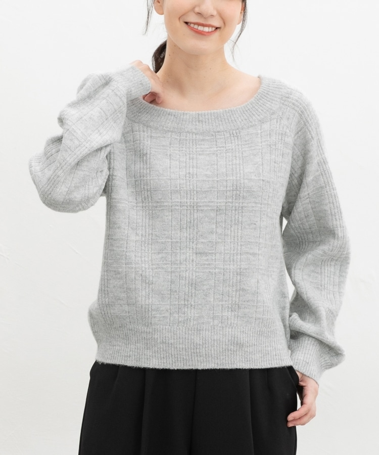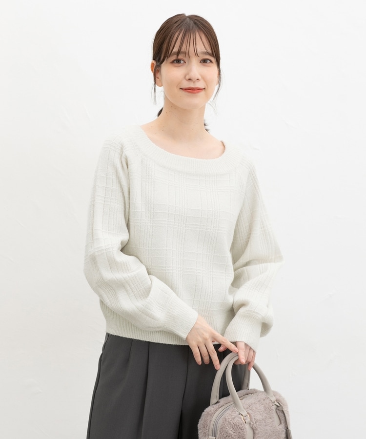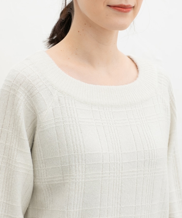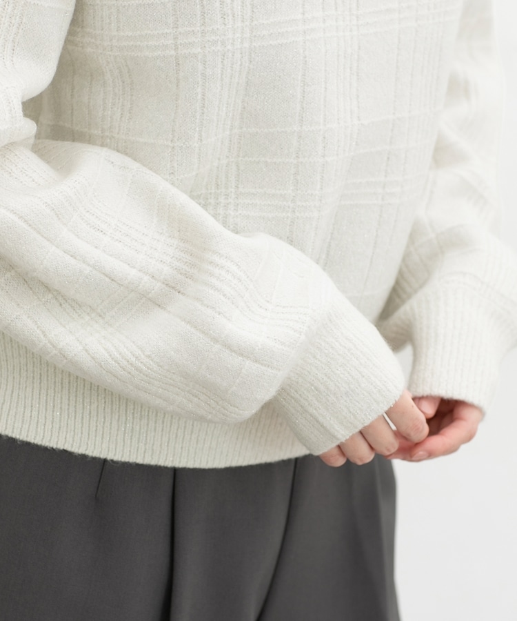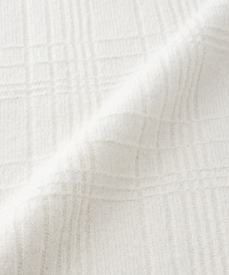 程よい厚みで暖かく、立体感のあるチェック編みニット素材。