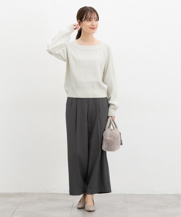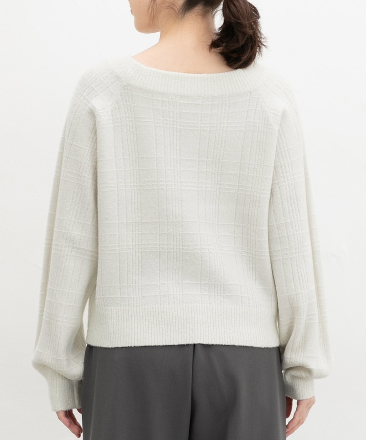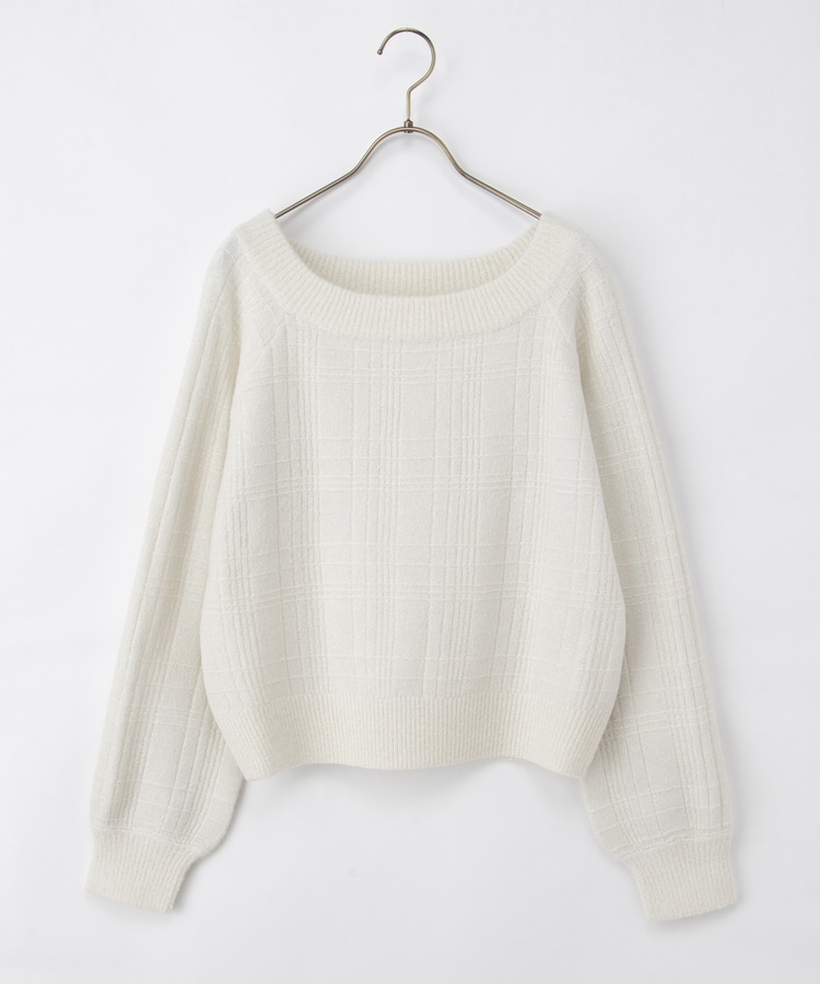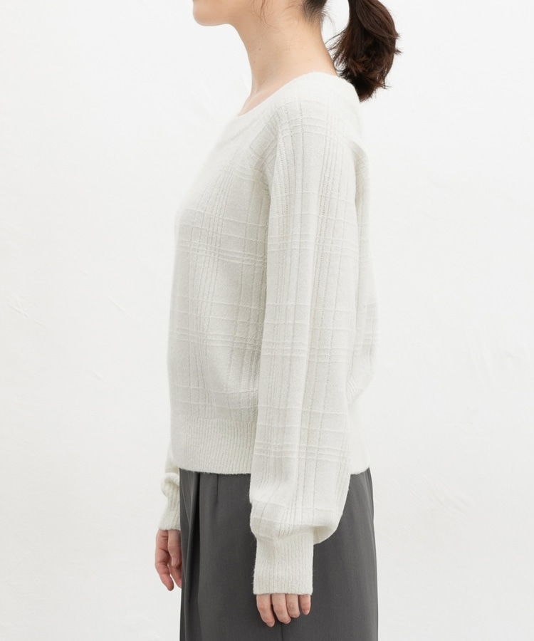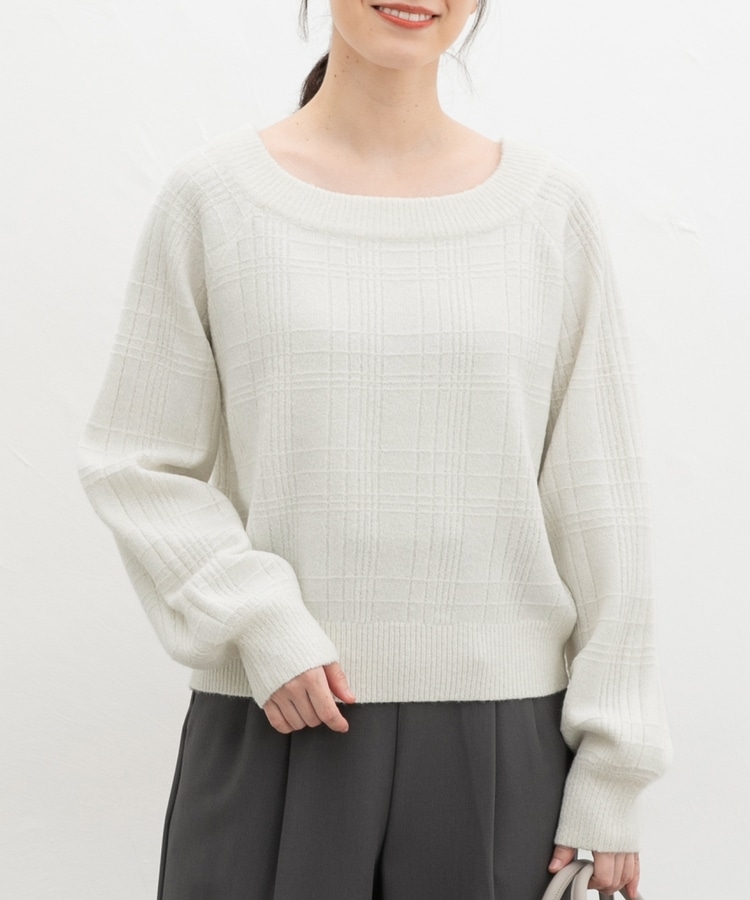 程よい厚みで暖かく、立体感のあるチェック編みニット素材。