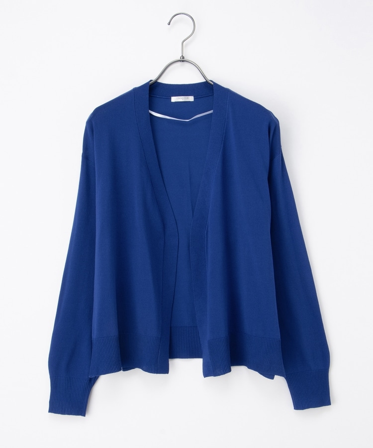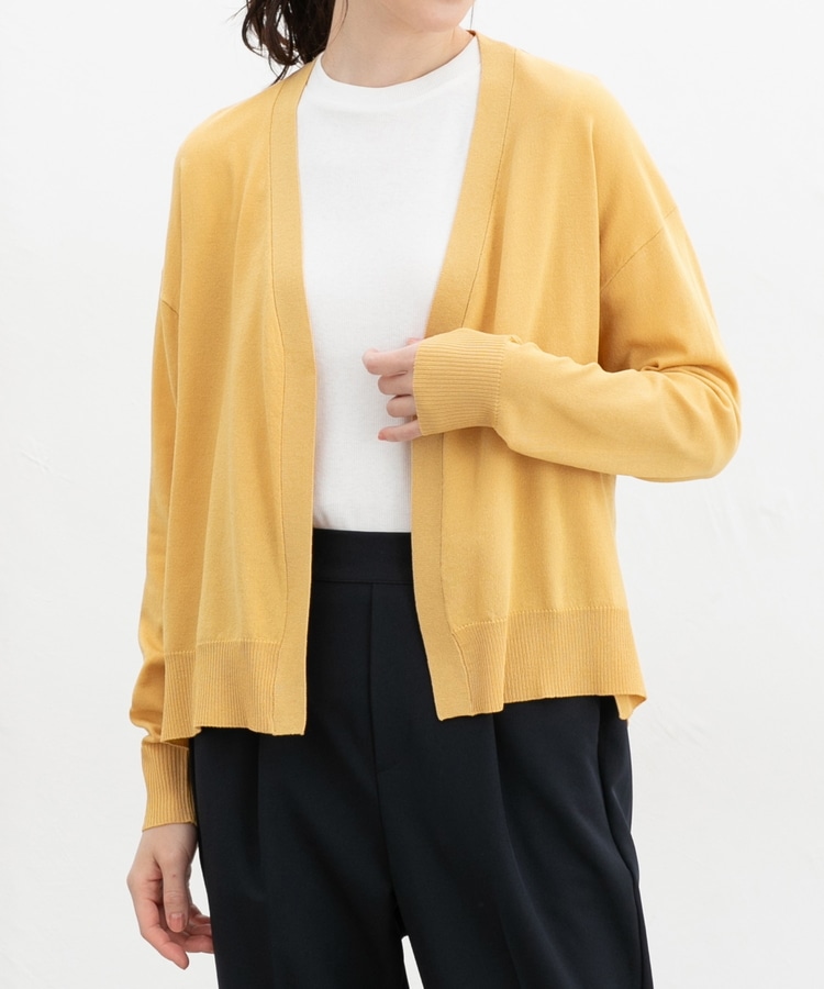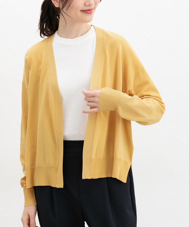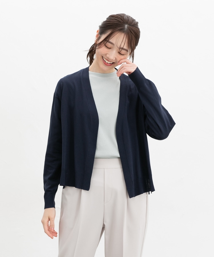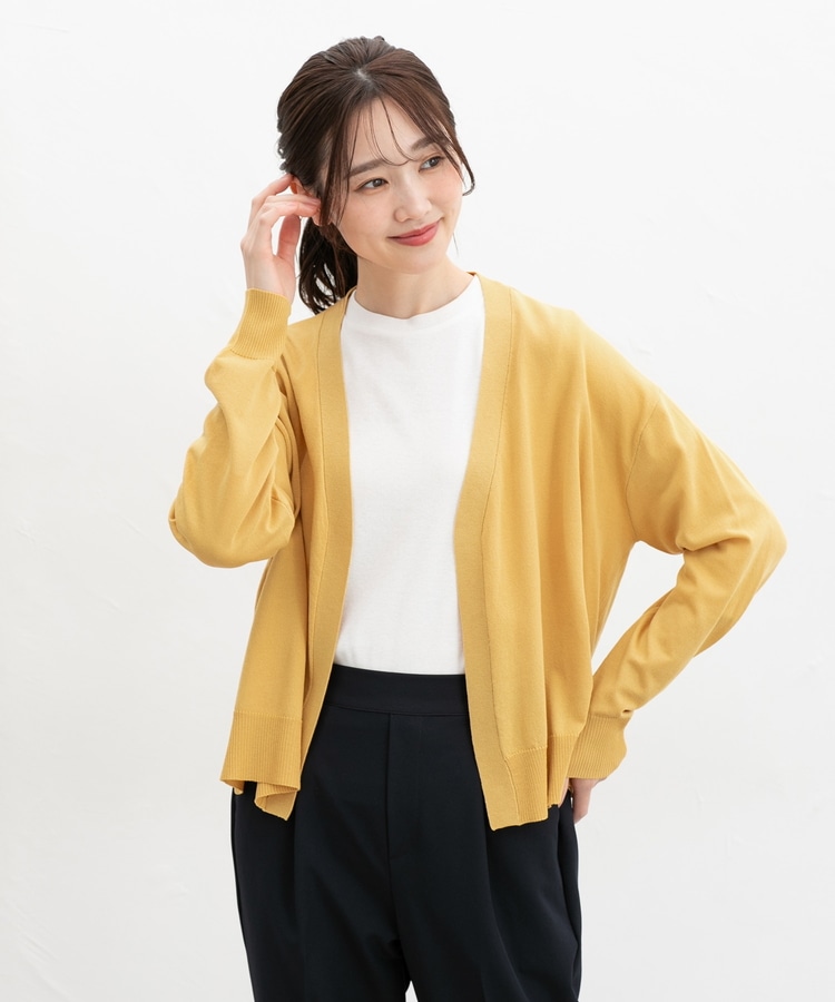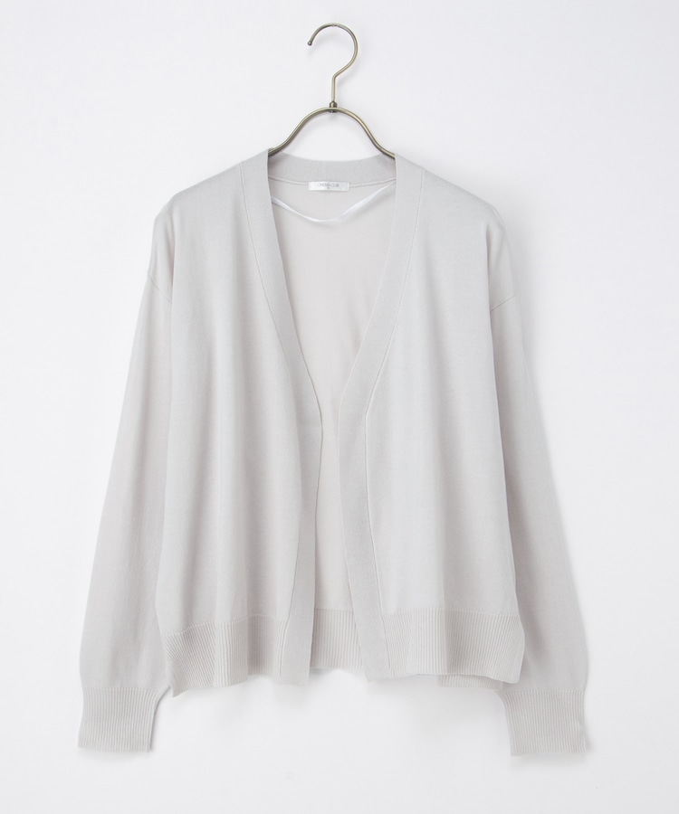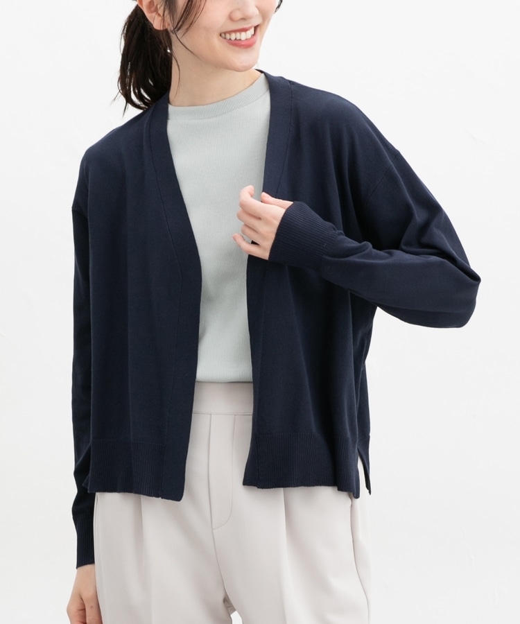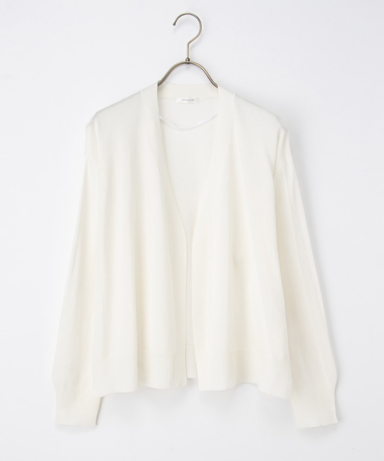 ボタンレスで手軽に羽織れるシンプルデザイン。