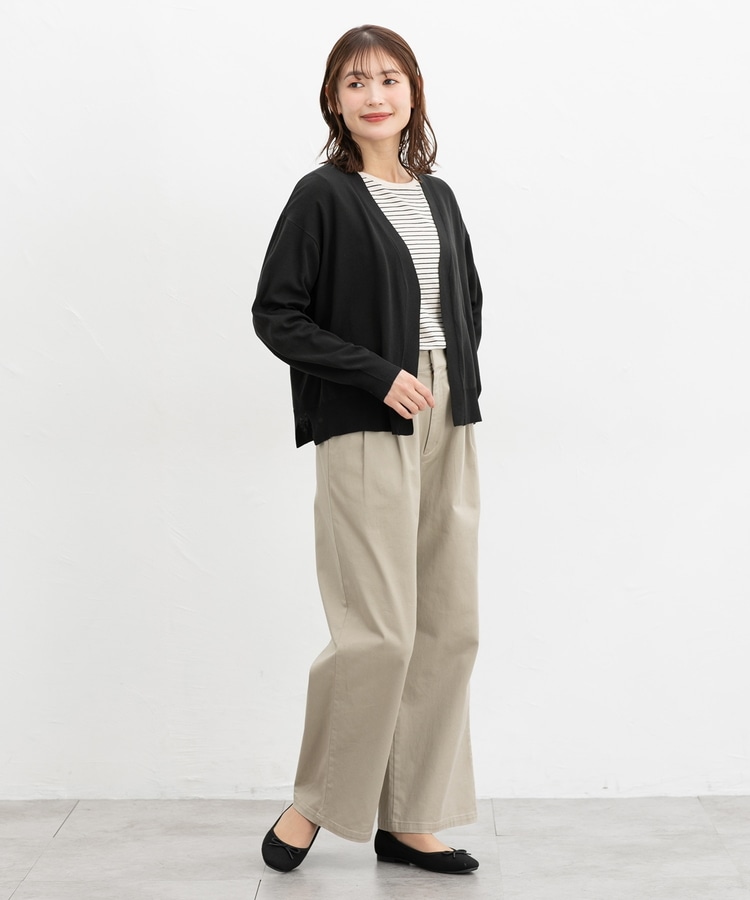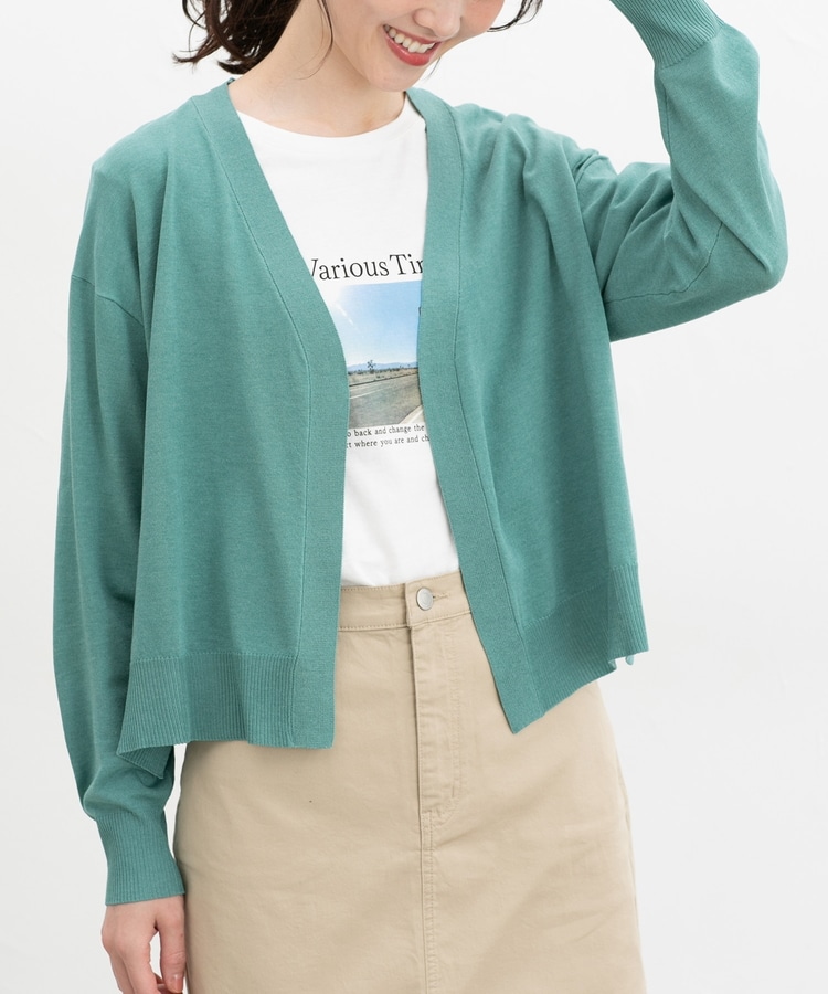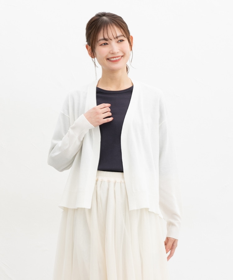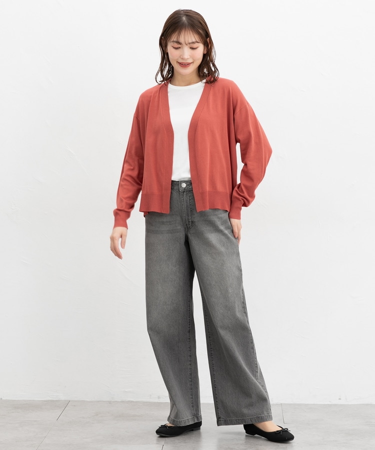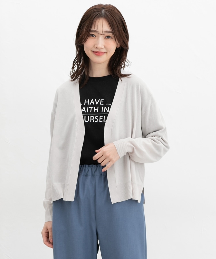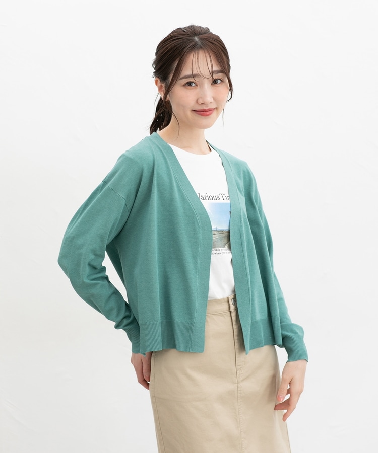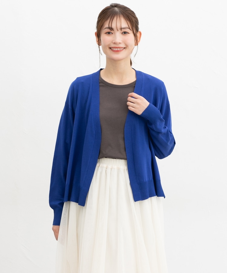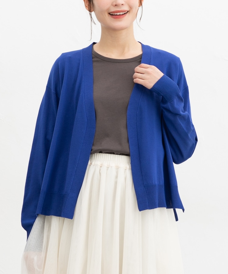 ボタンレスで手軽に羽織れるシンプルデザイン。