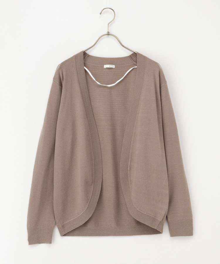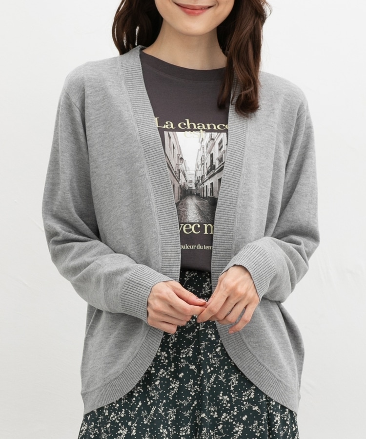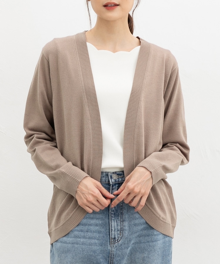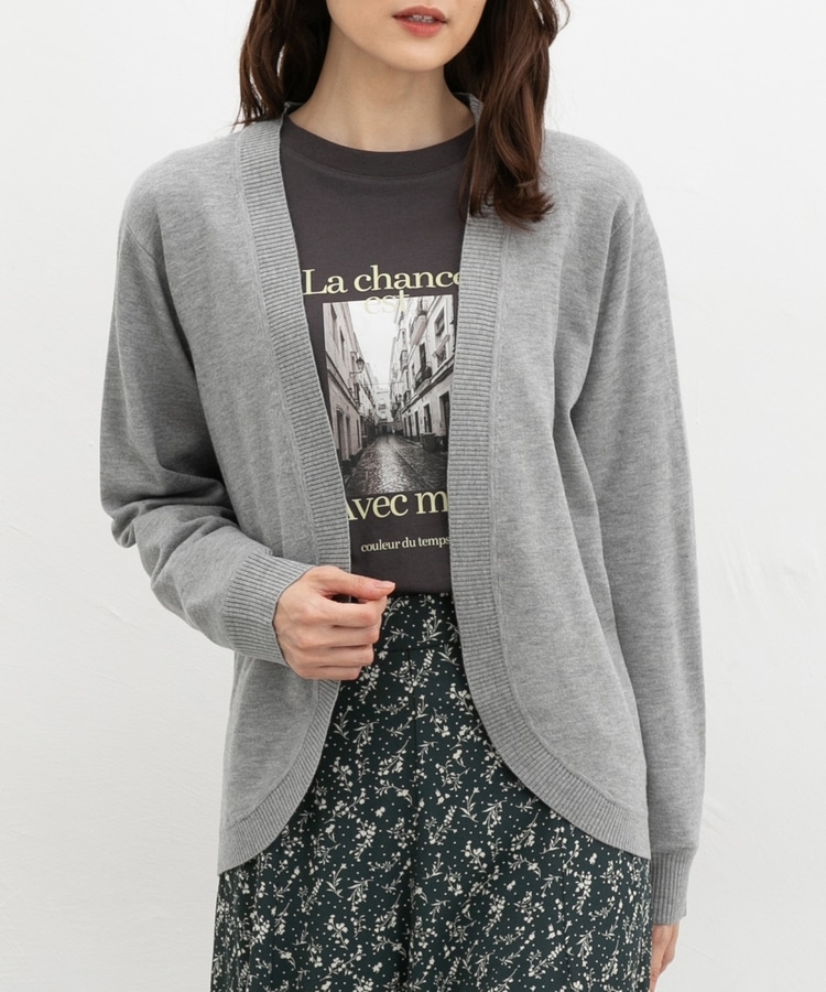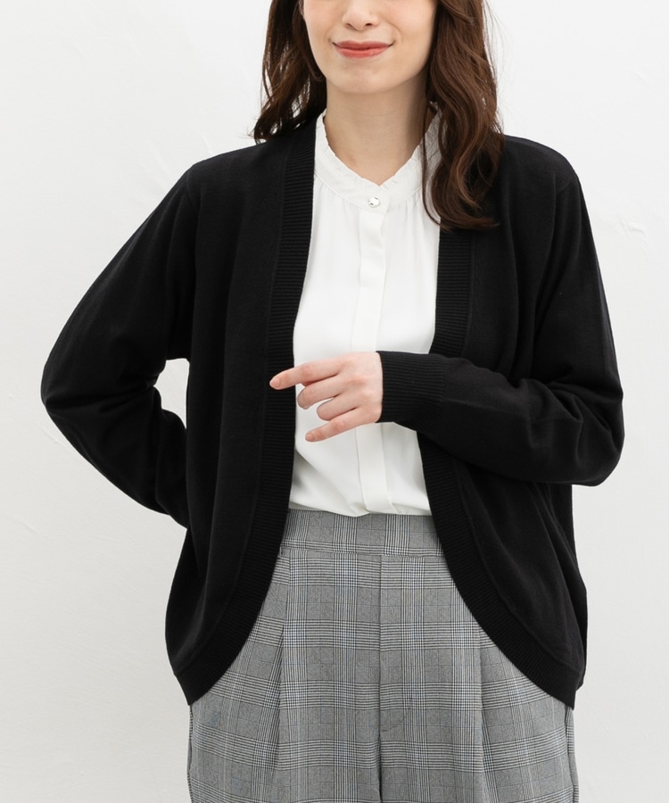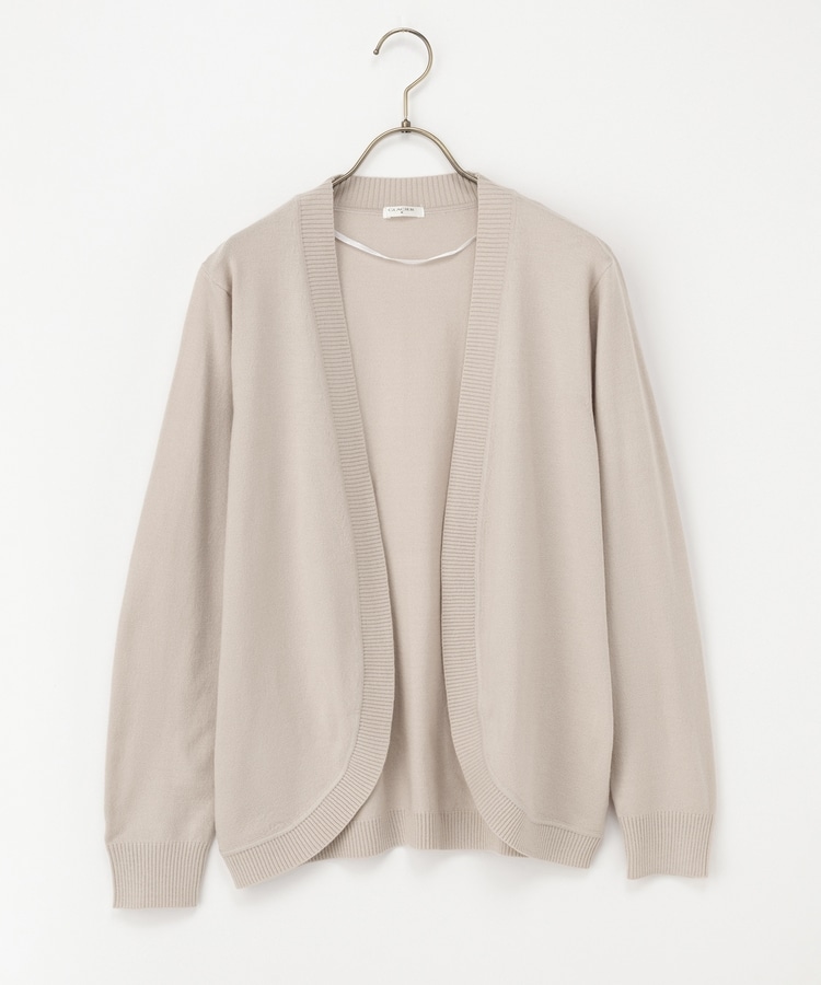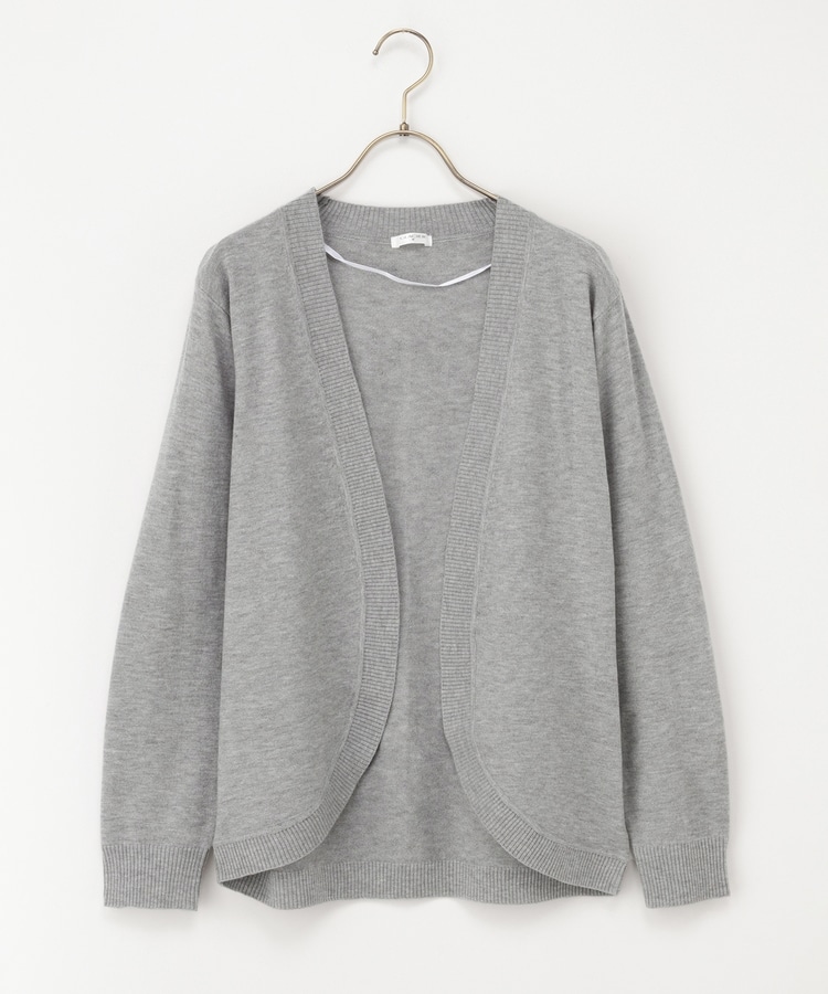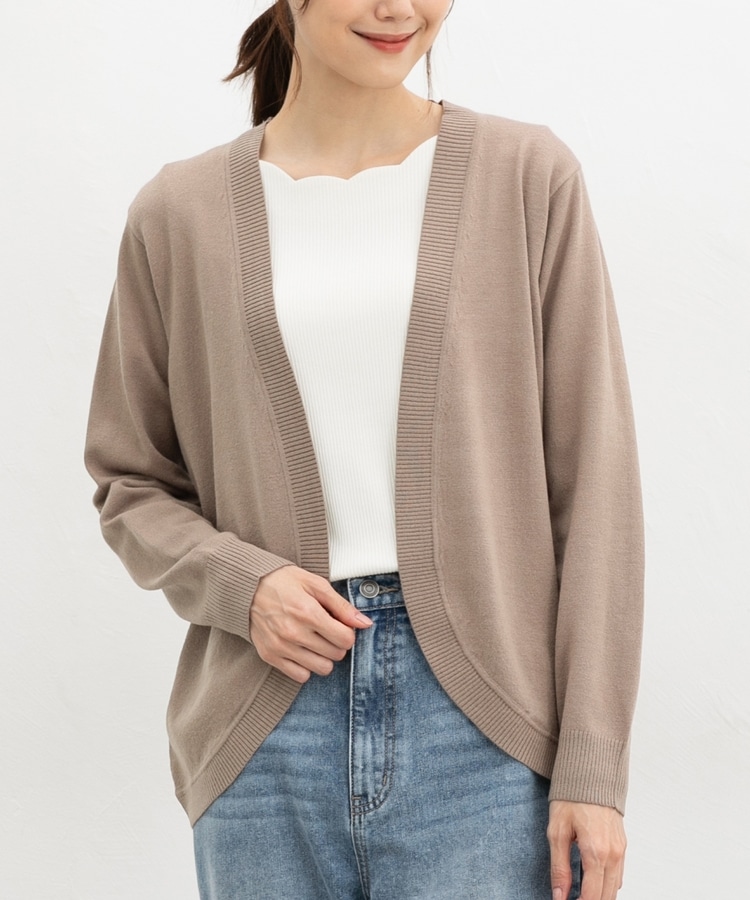 ラウンドした裾や丸みのあるシルエットがフェミニンな、手軽に羽織れるボタンレスデザイン。