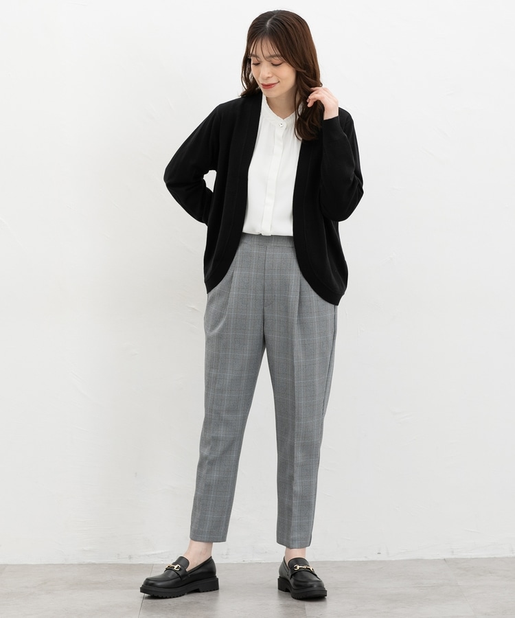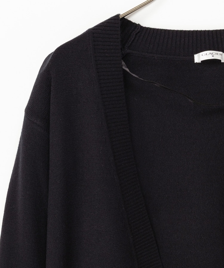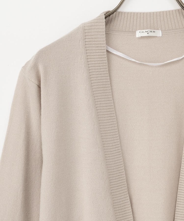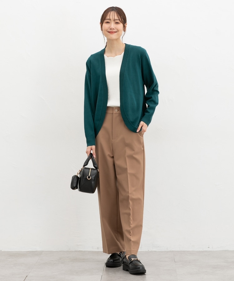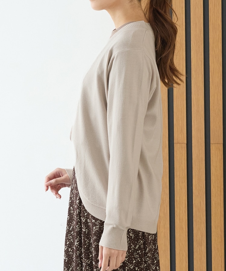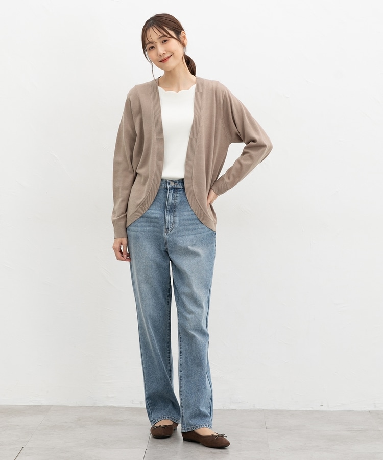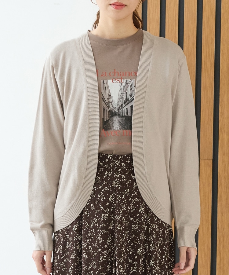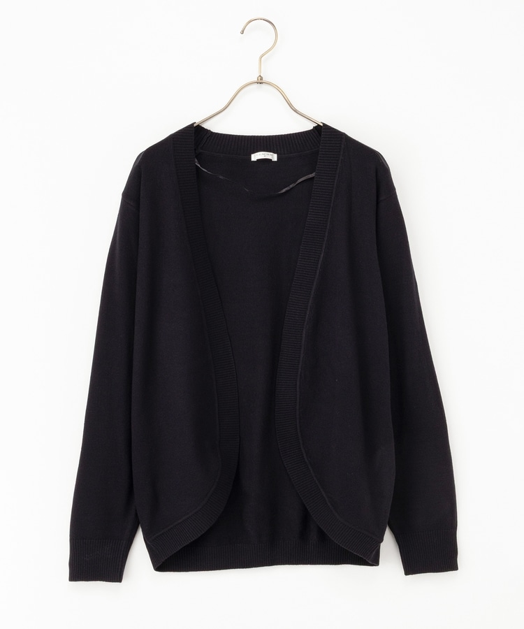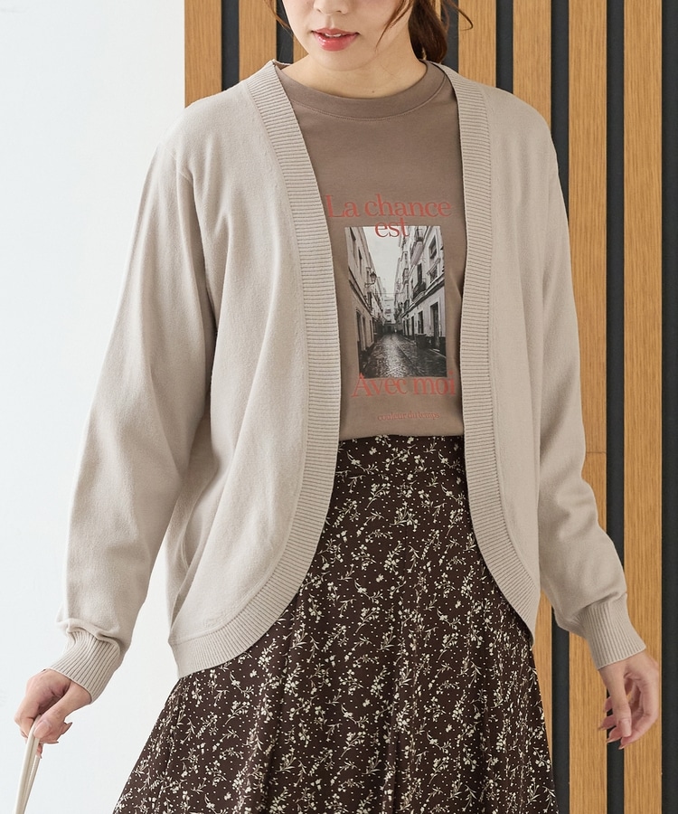 ラウンドした裾や丸みのあるシルエットがフェミニンな、手軽に羽織れるボタンレスデザイン。