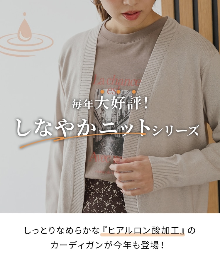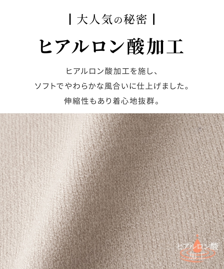 軽くてもちもちとした糸に『ヒアルロン酸加工』で潤いをプラスした、程良い厚みでしっとりソフトな風合いの『しなやかニット』素材。