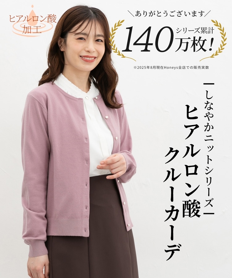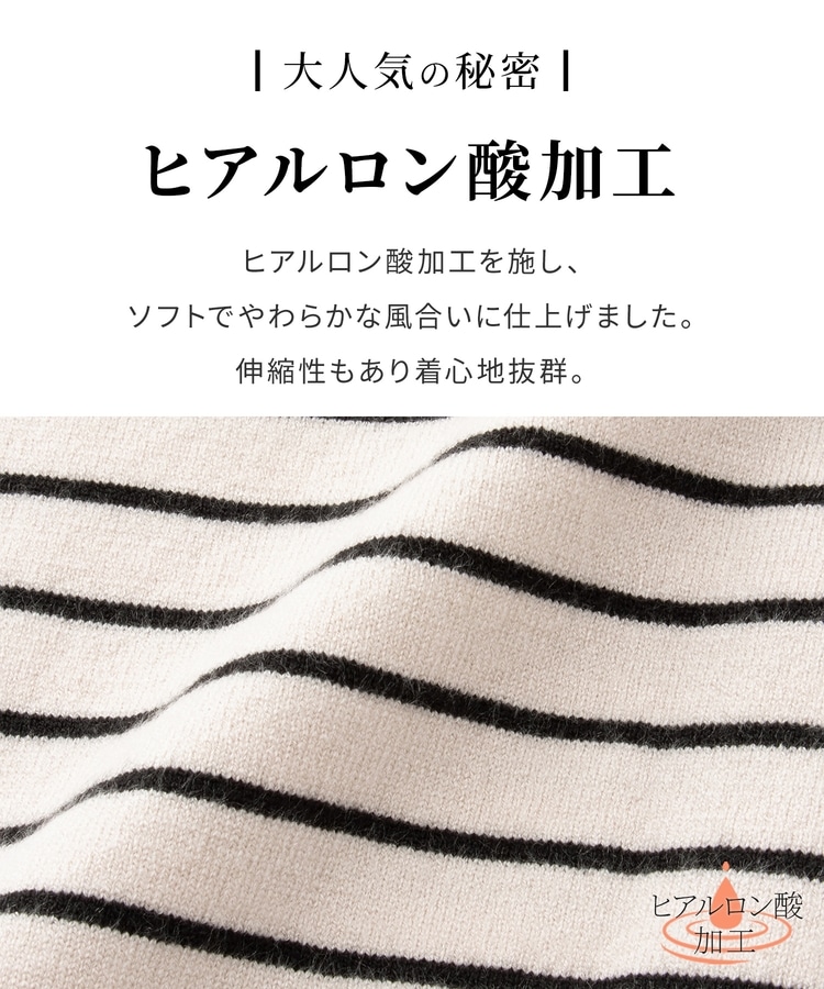 軽くてもちもちとした糸に『ヒアルロン酸加工』で潤いをプラスした、程良い厚みでしっとりソフトな風合いの『しなやかニット』素材。