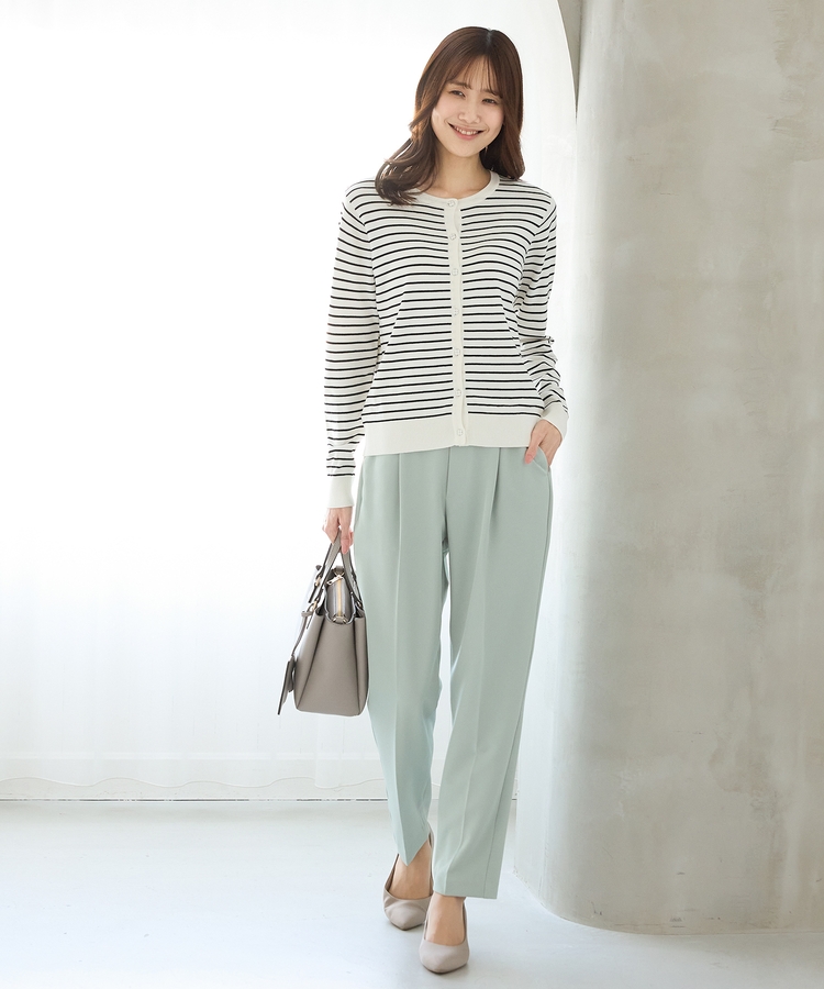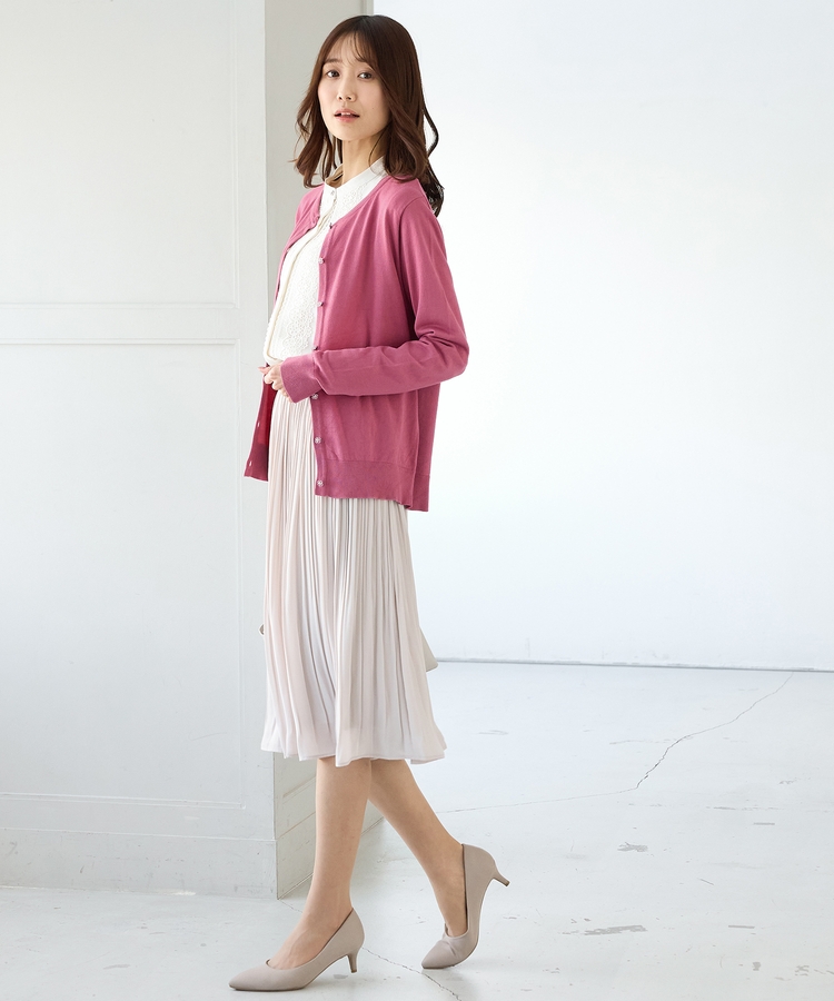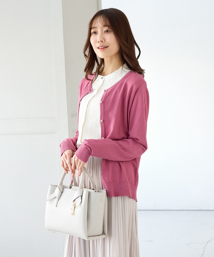 羽織りとしてはもちろん、ボタンを閉めてプルオーバーとしても楽しめ、テーパードパンツやフレアスカートと合わせたきれいめお仕事スタイルから、デニムと合わせたカジュアルスタイルまで幅広い着回しに活躍。