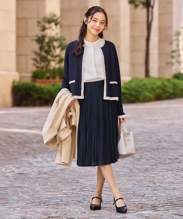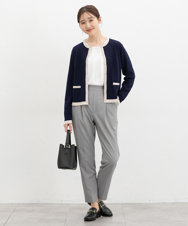 きれいめなテーパードパンツやタイトスカートと合わせた通勤スタイルから、デニムと合わせたカジュアルスタイルまで幅広い着回しに活躍。