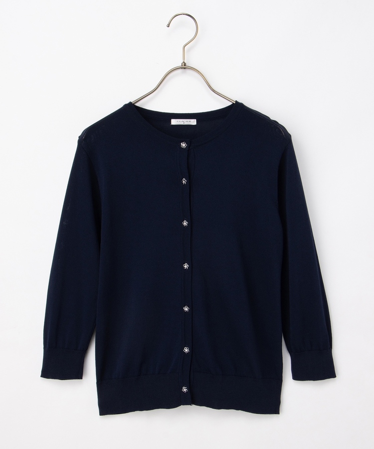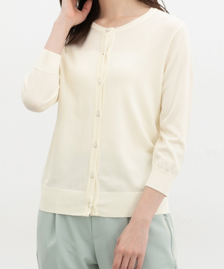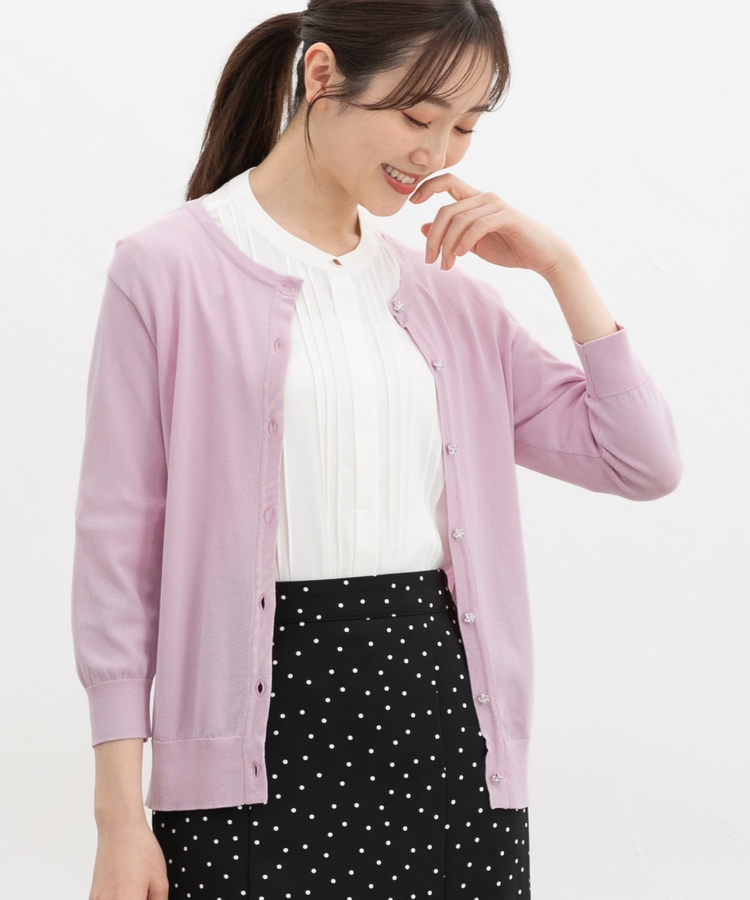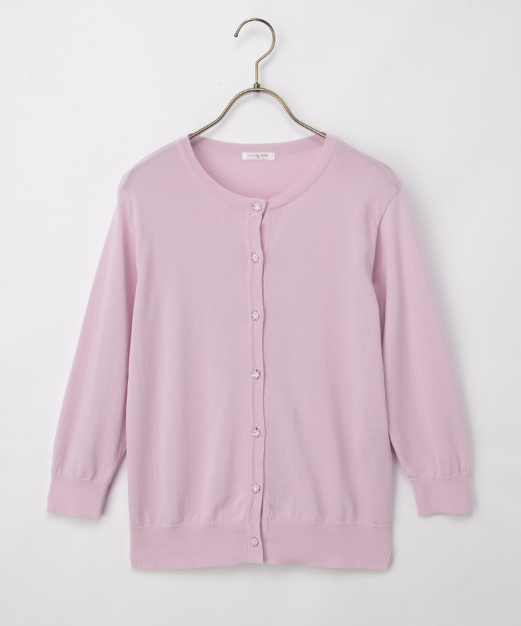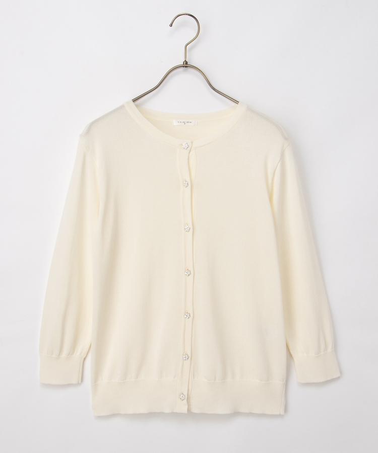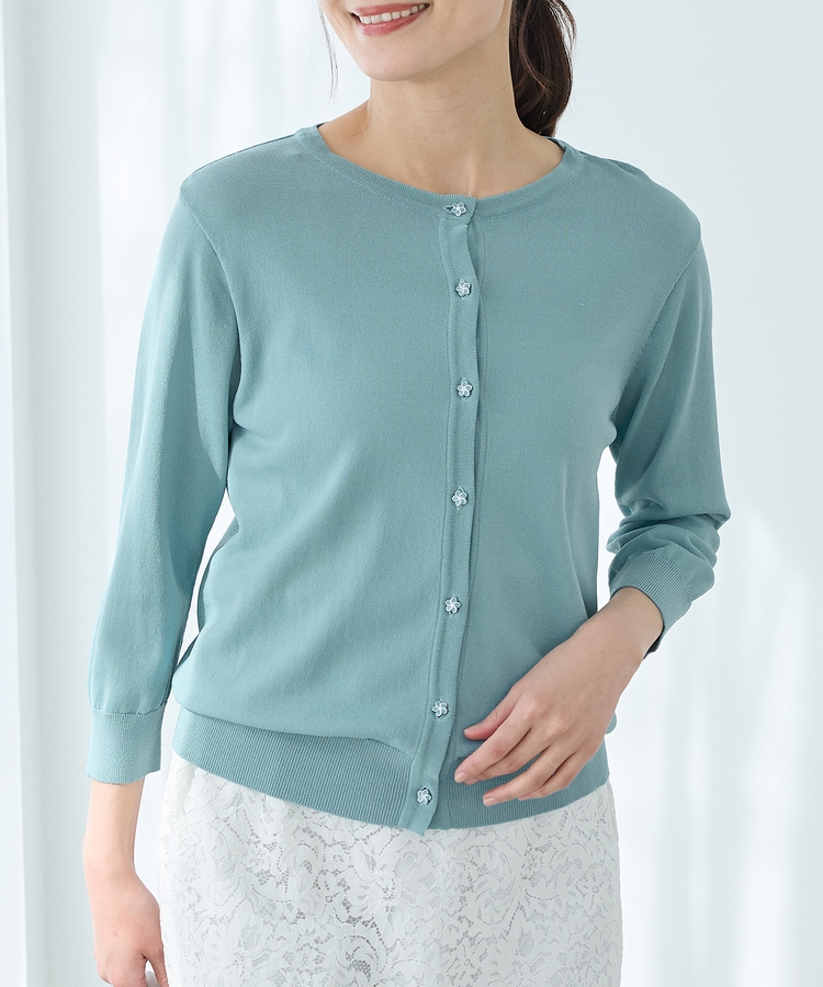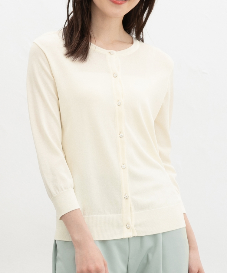 7分袖フラワー釦カーデ