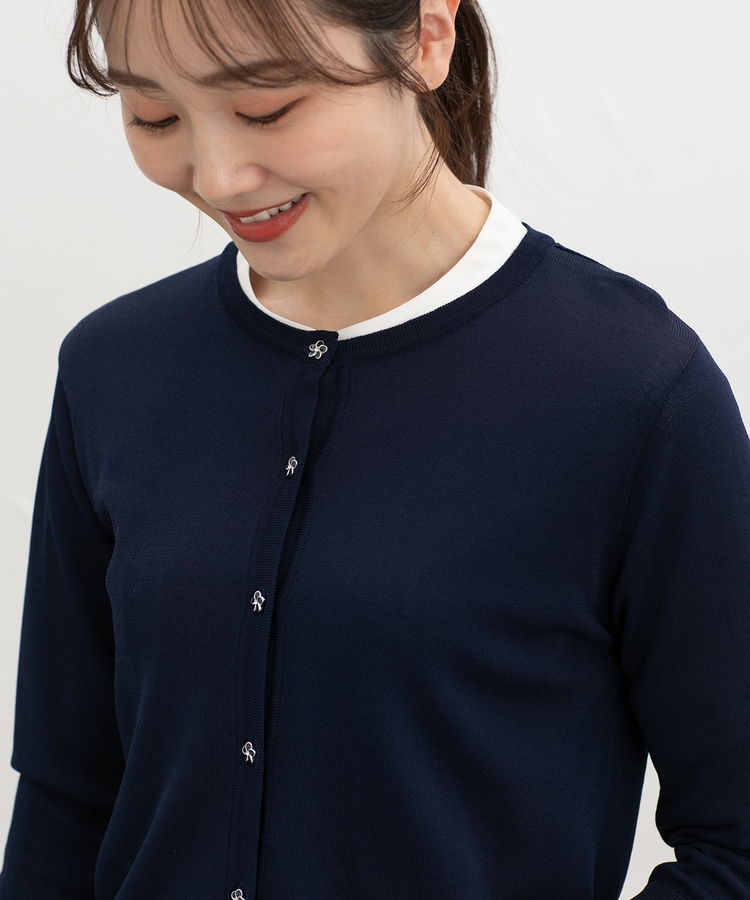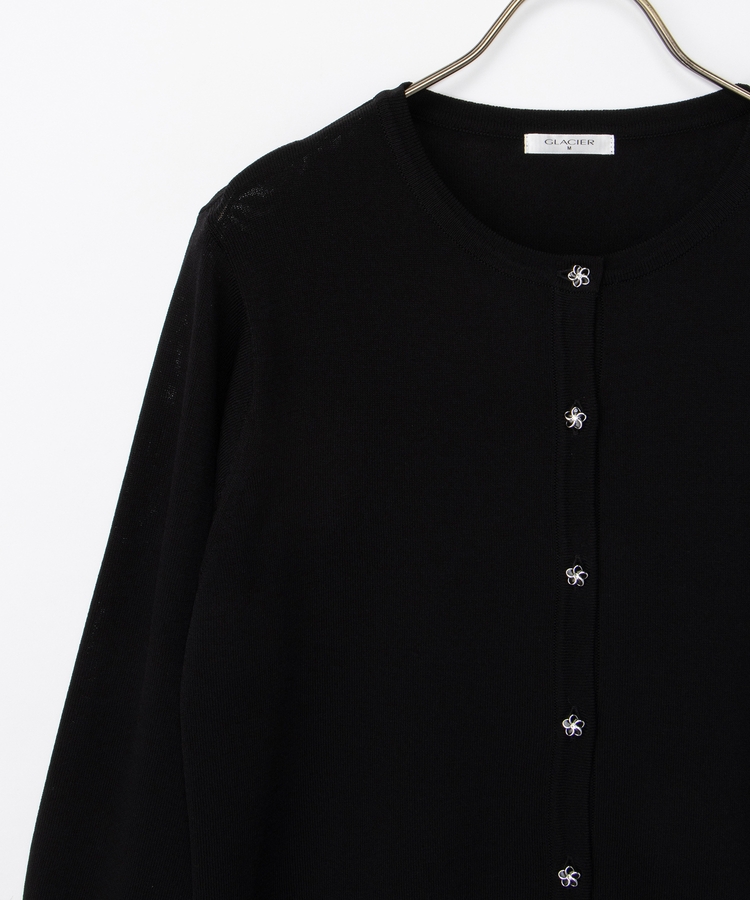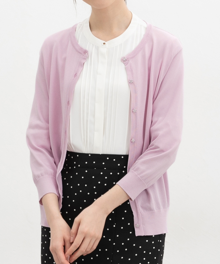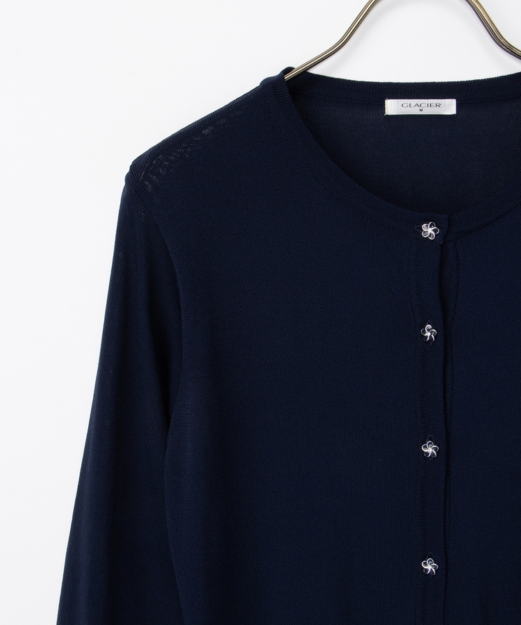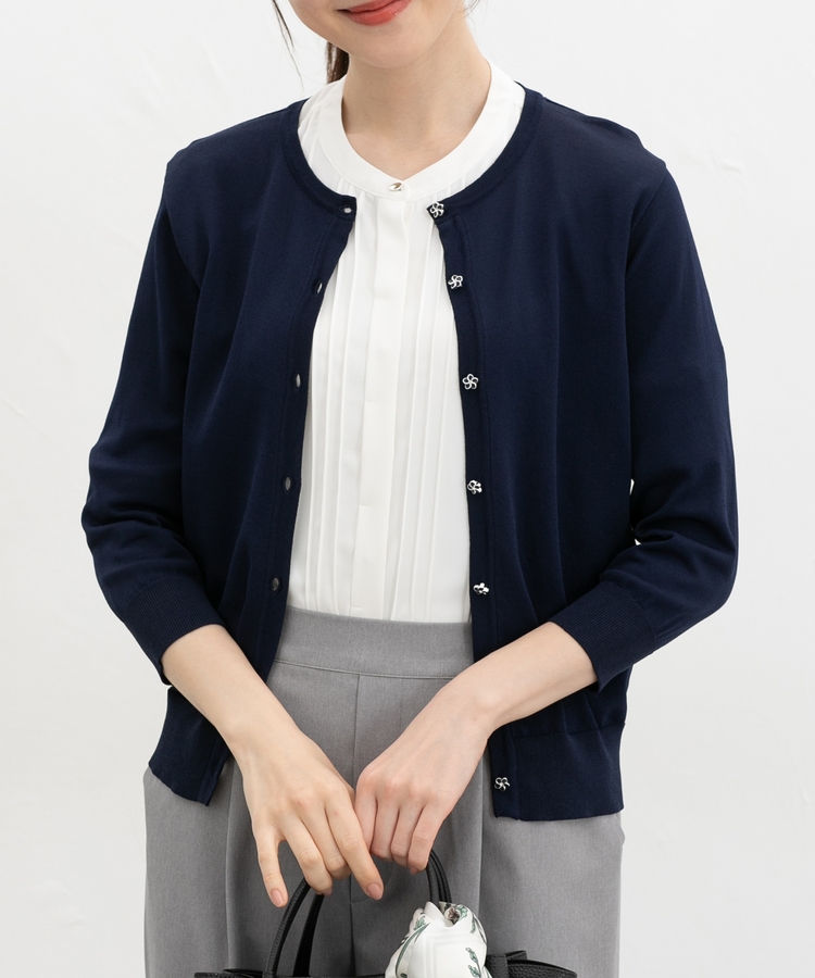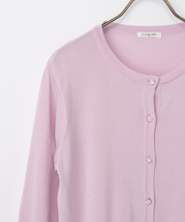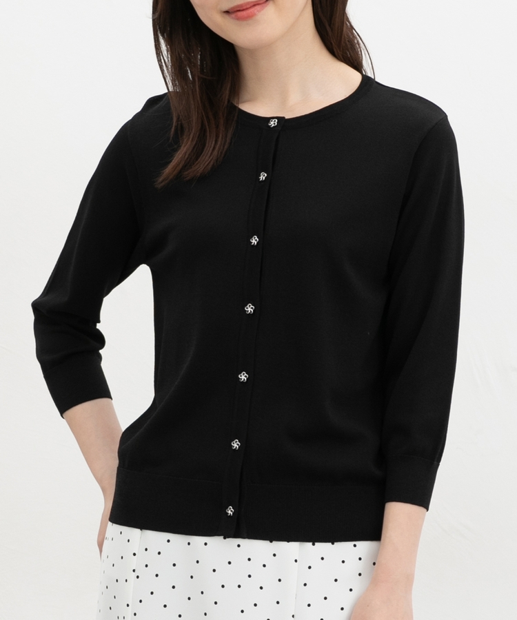 7分袖フラワー釦カーデ