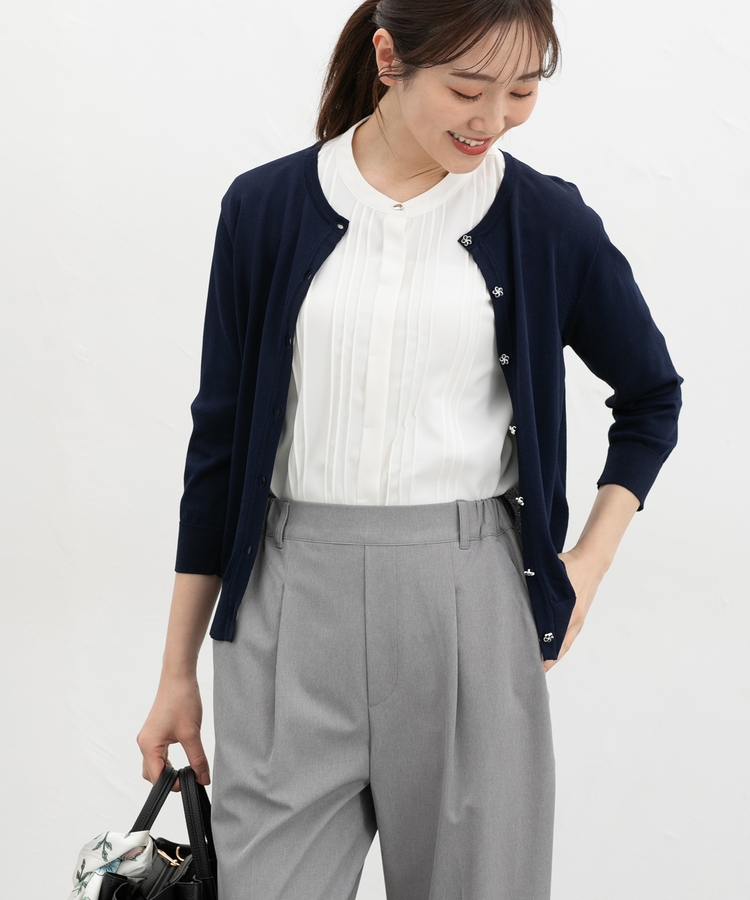 羽織りとしてはもちろん、ボタンを閉めてプルオーバーとしても楽しめ、テーパードパンツやフレアスカートと合わせたきれいめお仕事スタイルから、デニムと合わせたカジュアルスタイルまで幅広い着回しに活躍。