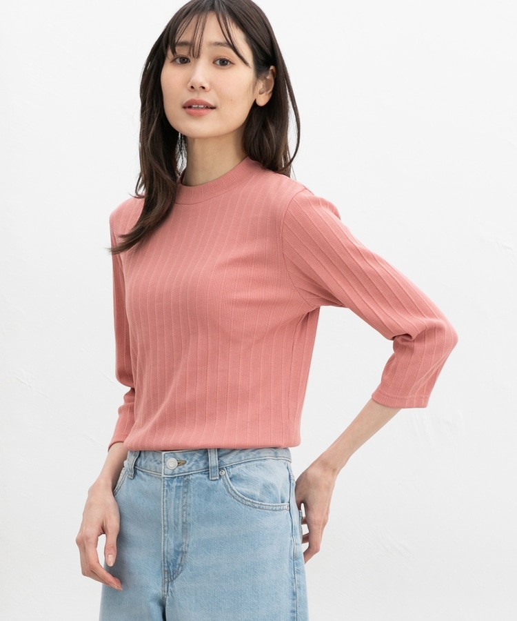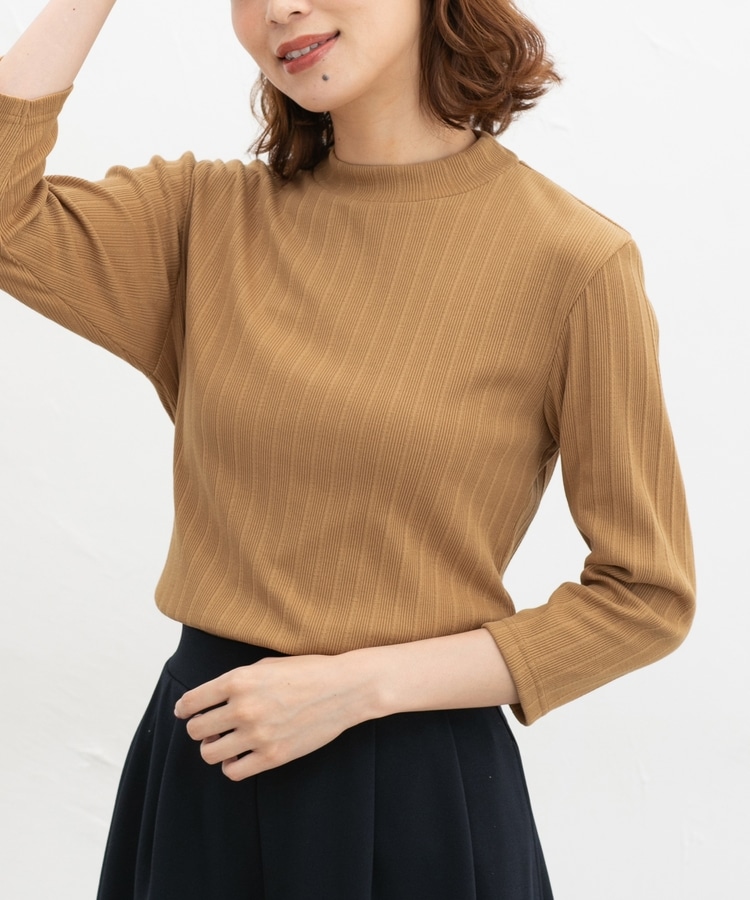 縦目のラインと体にフィットするサイズ感ですっきり細見せが叶うデザイン。