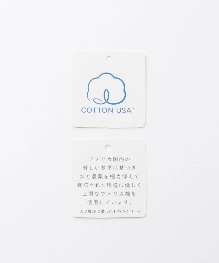 アメリカ国内の厳しい基準に基づき、水と農薬を極力抑えて栽培された、環境に優しく着心地もよいUSAコットン100%素材。