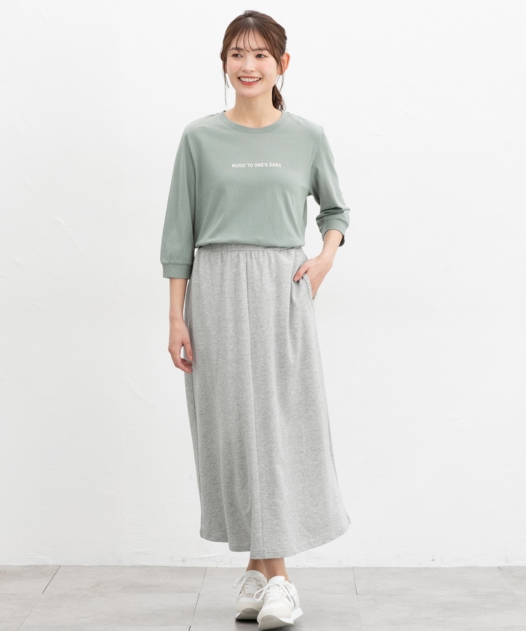腰回りが隠れる丈感の、ゆったりめシルエット。