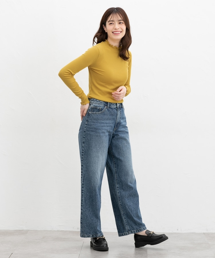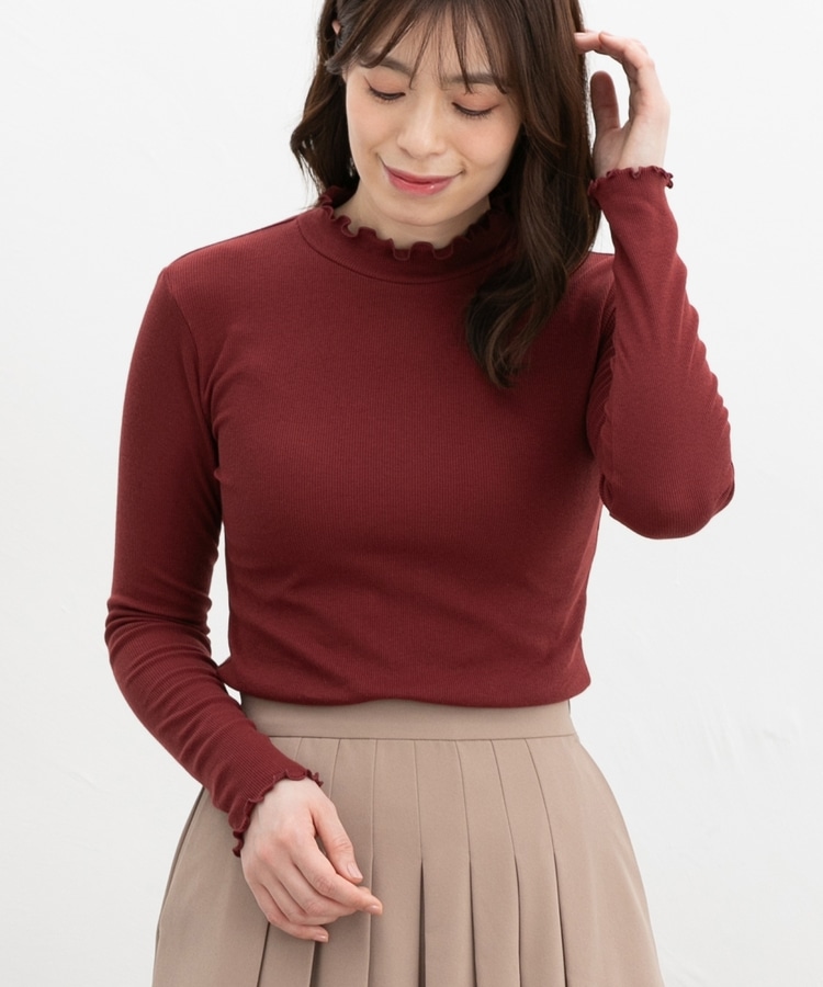 衿ぐり・裾・袖口のメローがおしゃれなシンプルデザイン。