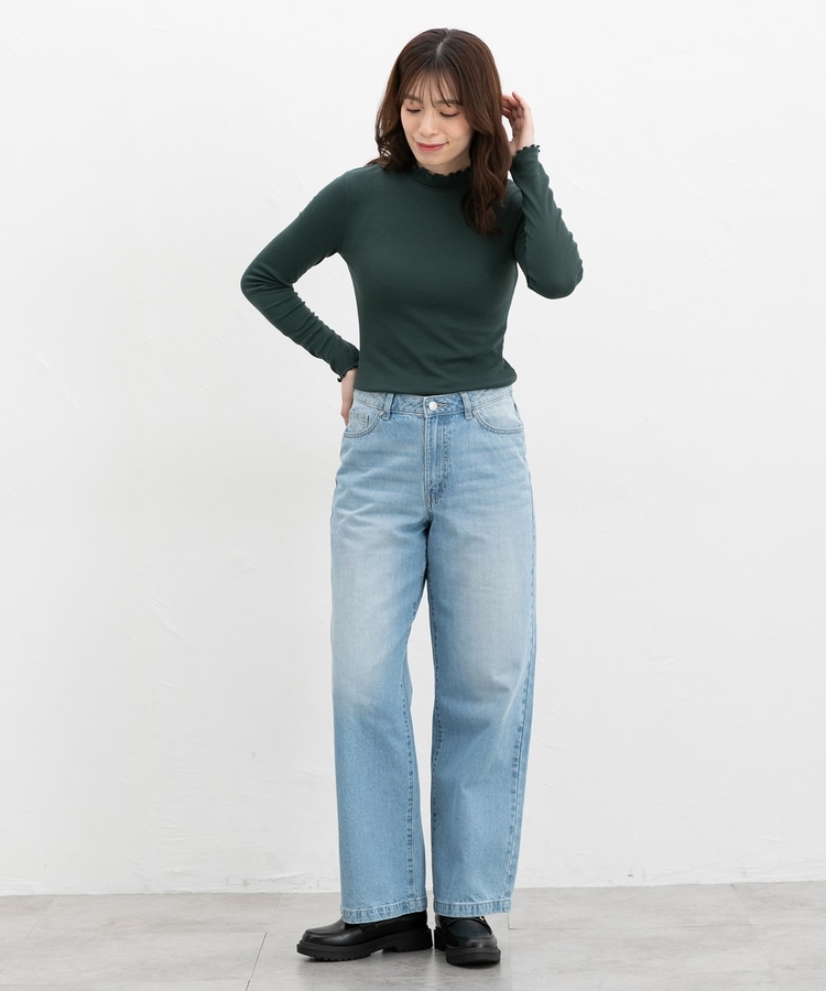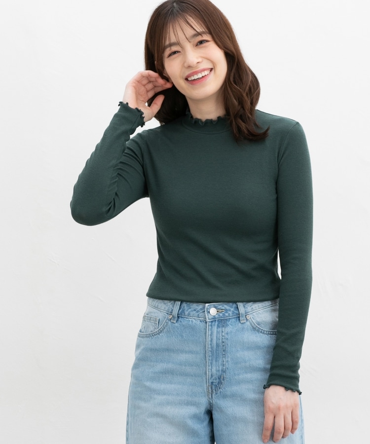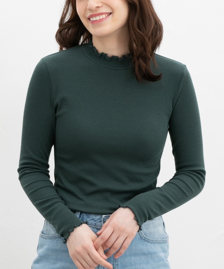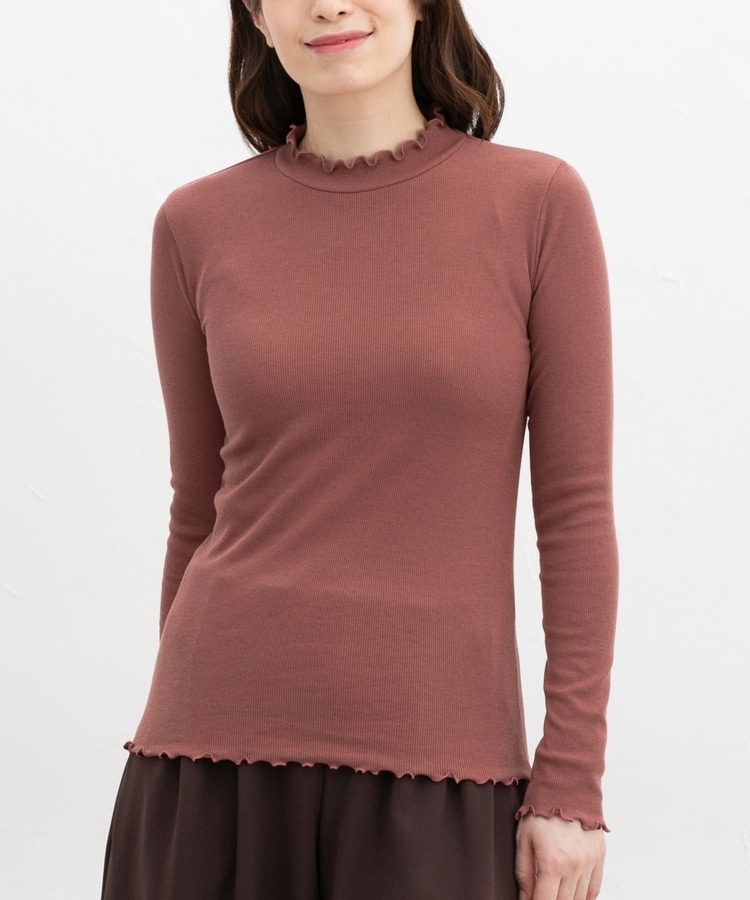ストレッチの利いた、柔らかな綿混リブ素材。
