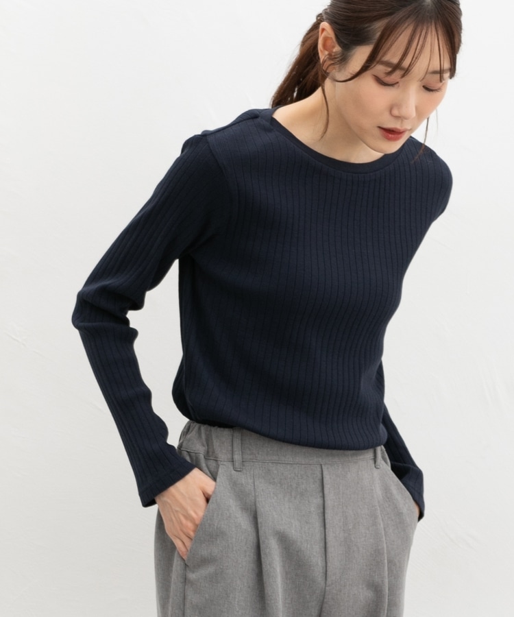 シンプルでスカートにもパンツにも合い、1枚でも、シャツやカーディガンのインナーとしても、毎日大活躍。