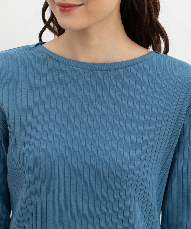 デコルテをきれいに見せる、控えめな開き具合のボートネックデザイン。