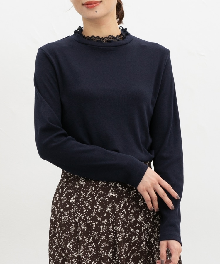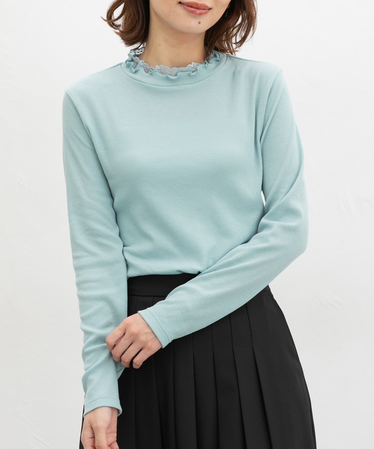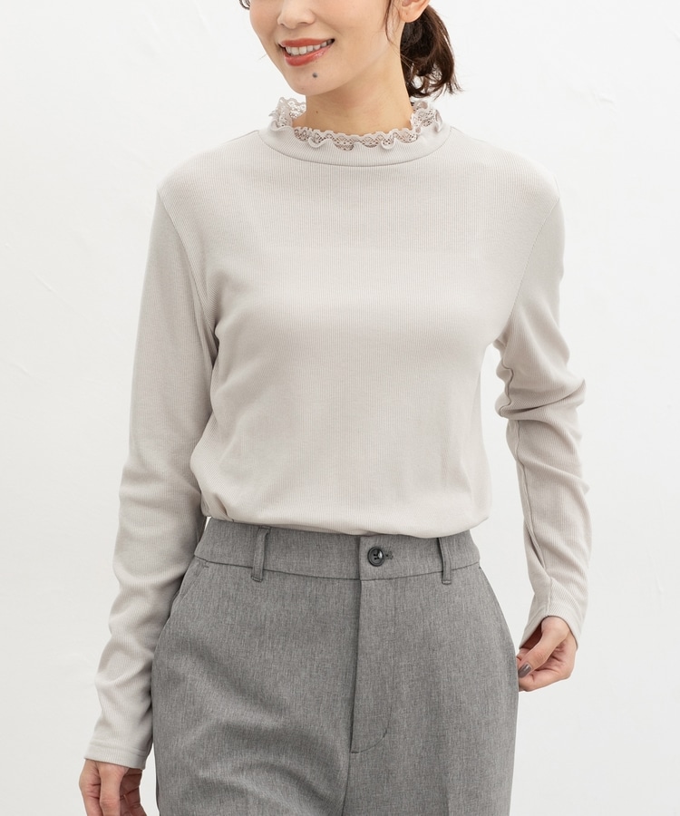 衿ぐりのレース使いがさりげなく華やかなデザイン。
