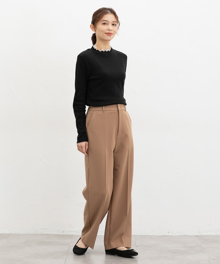 ストレッチの利いた、柔らかで着心地のよい綿混リブ素材。