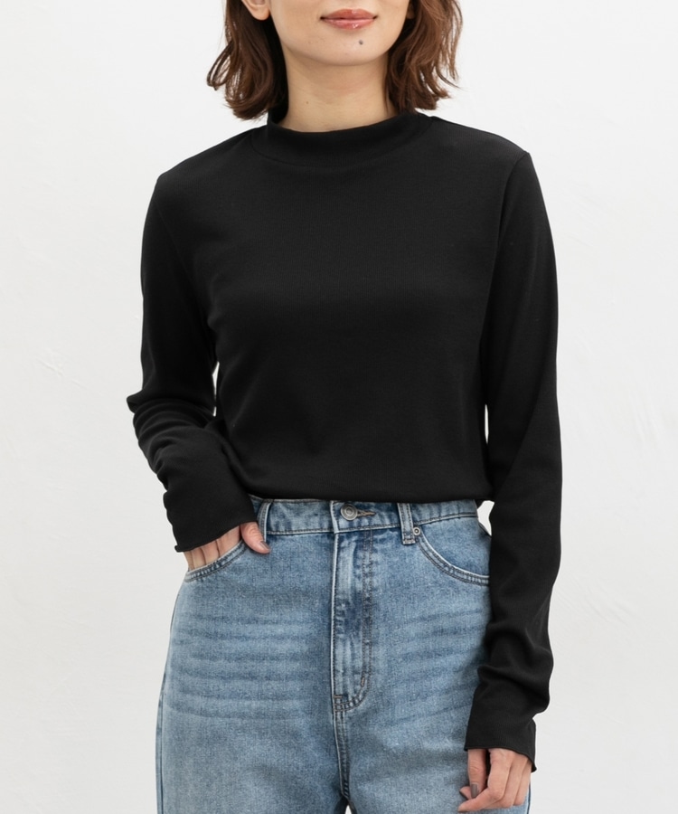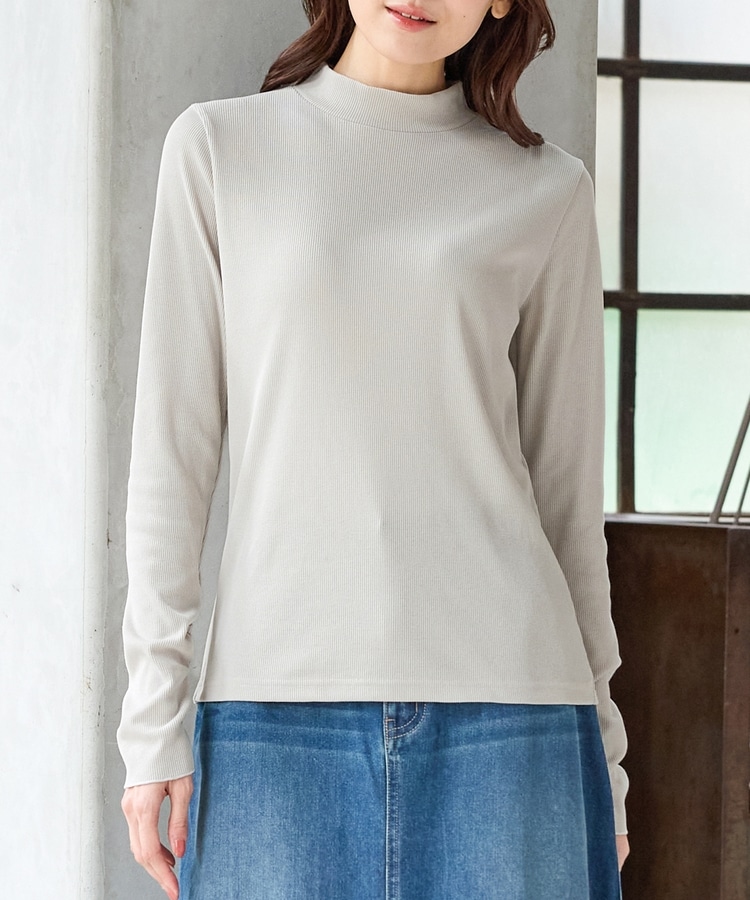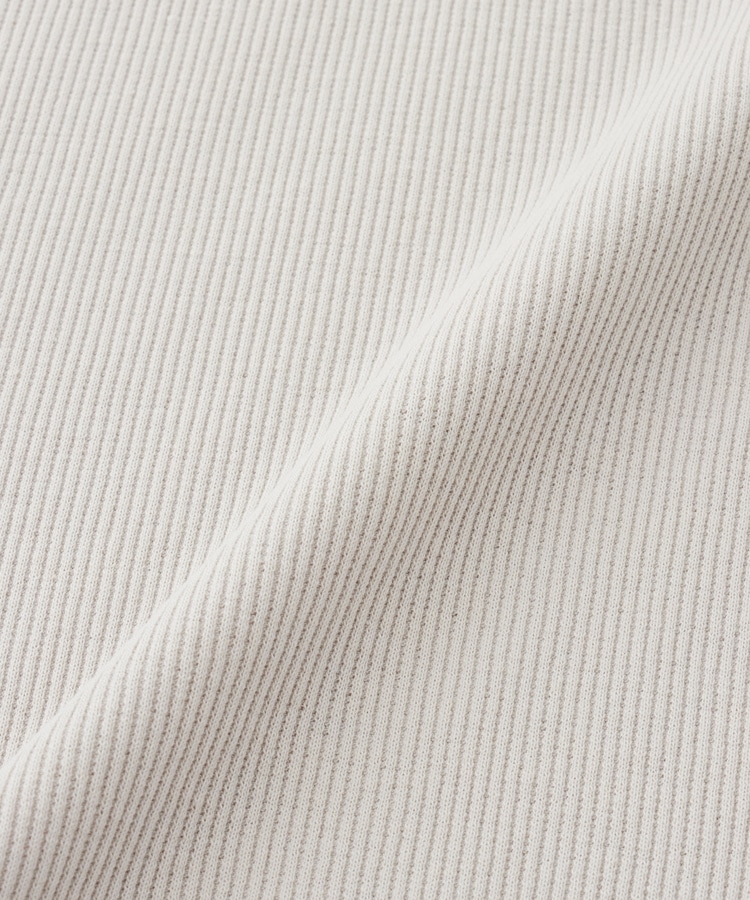 ストレッチの利いた、柔らかで着心地のよい綿混テレコ素材。