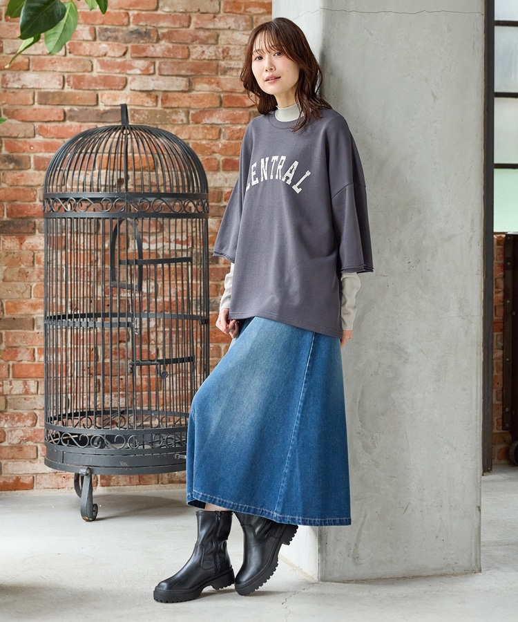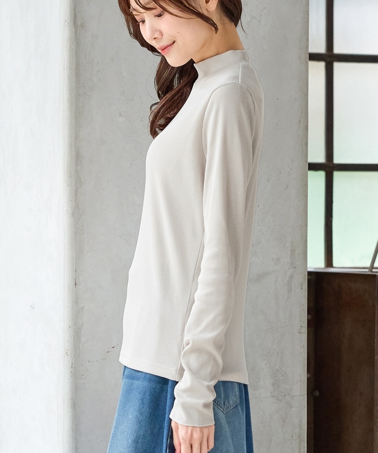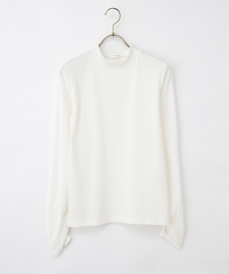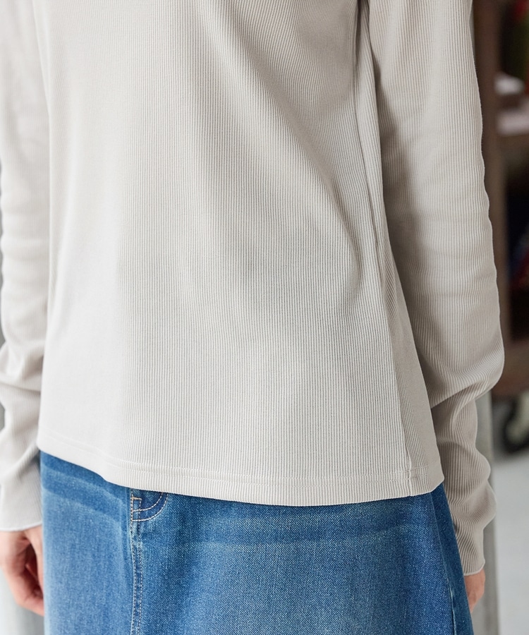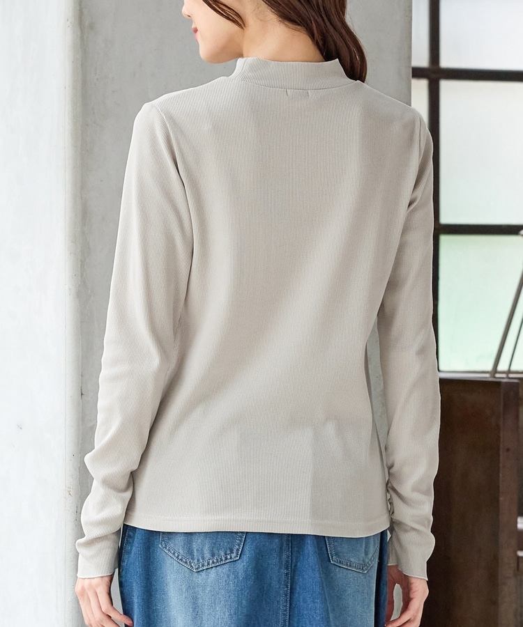 1枚ではもちろん、シャツやカーディガンをレイヤードして袖口からシャーリングをのぞかせると洒落度アップ。