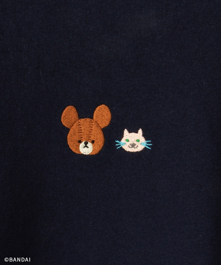 絵本シリーズ「くまのがっこう」のジャッキーやねこさん、チャッキーたちのワンポイント刺繍やプリントが可愛らしいデザイン。