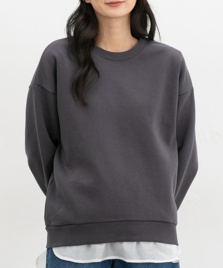 前後差ヘムやドロップショルダーで、こなれた印象に。