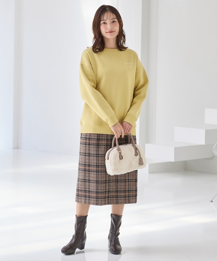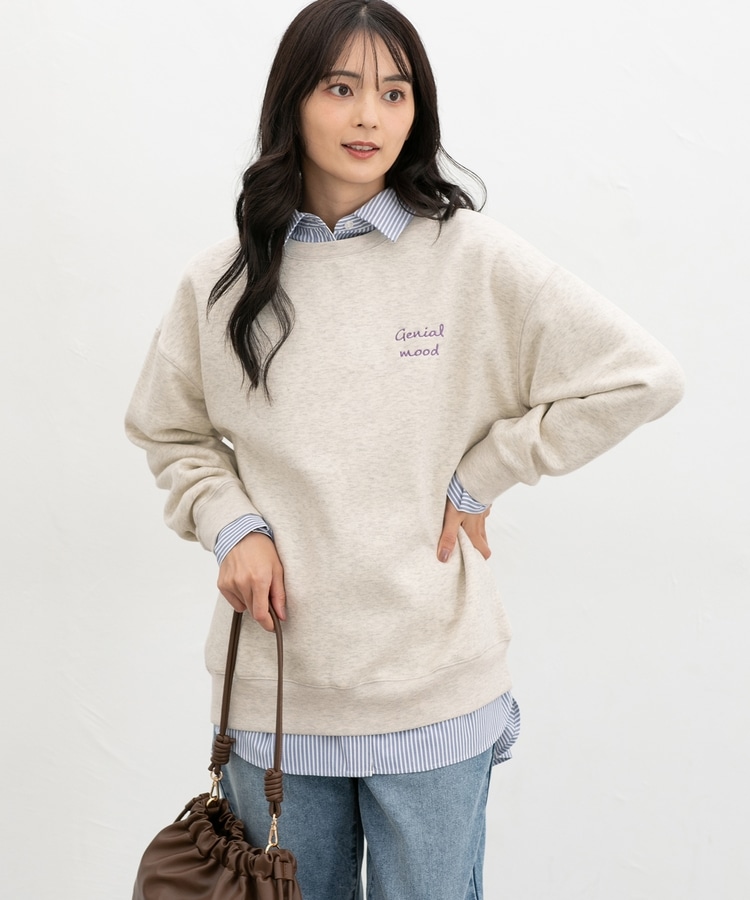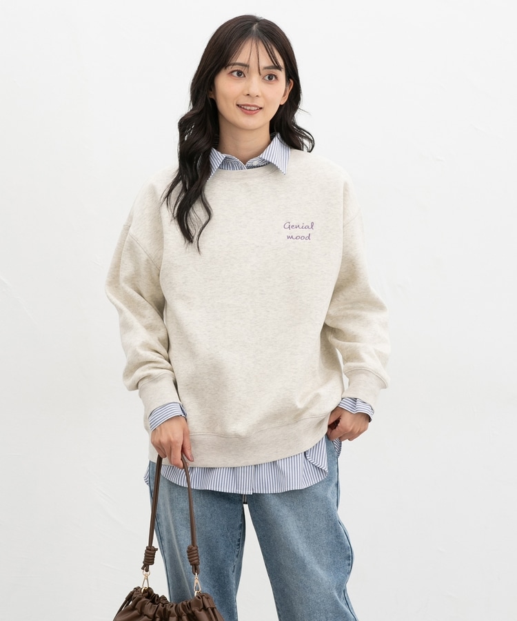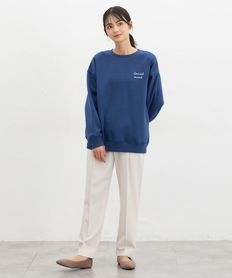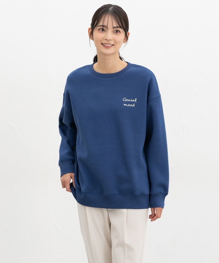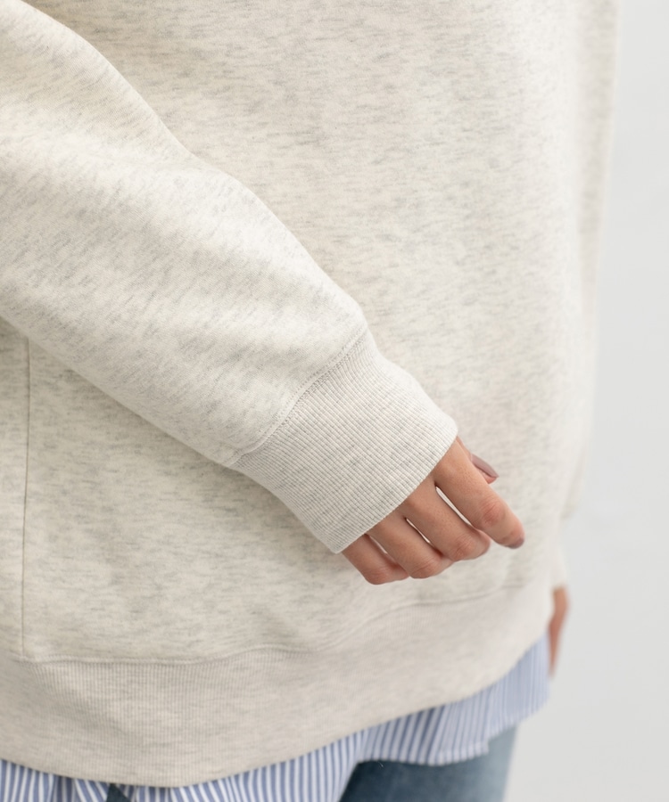 ヒップまで隠れる丈感とドロップショルダーのゆったりシルエットで体型もカバー。