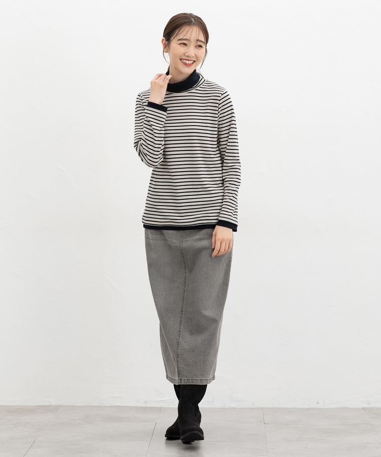 腰回りが隠れる丈感の、すっきりめシルエット。