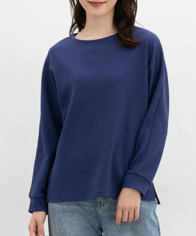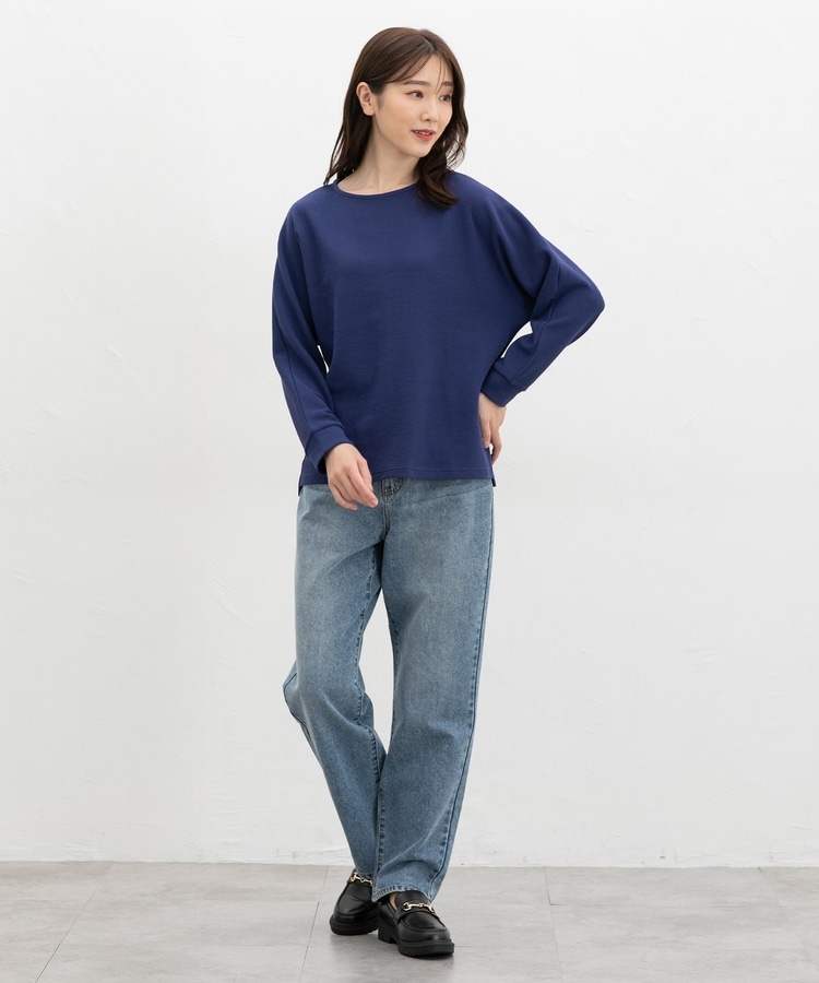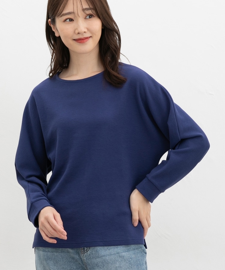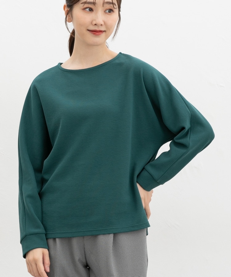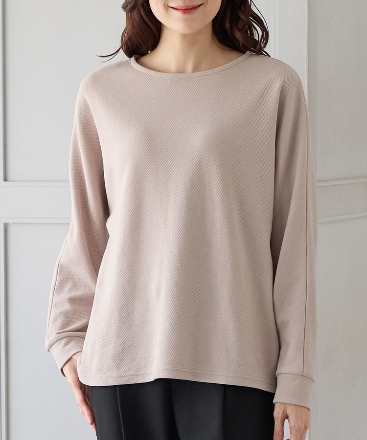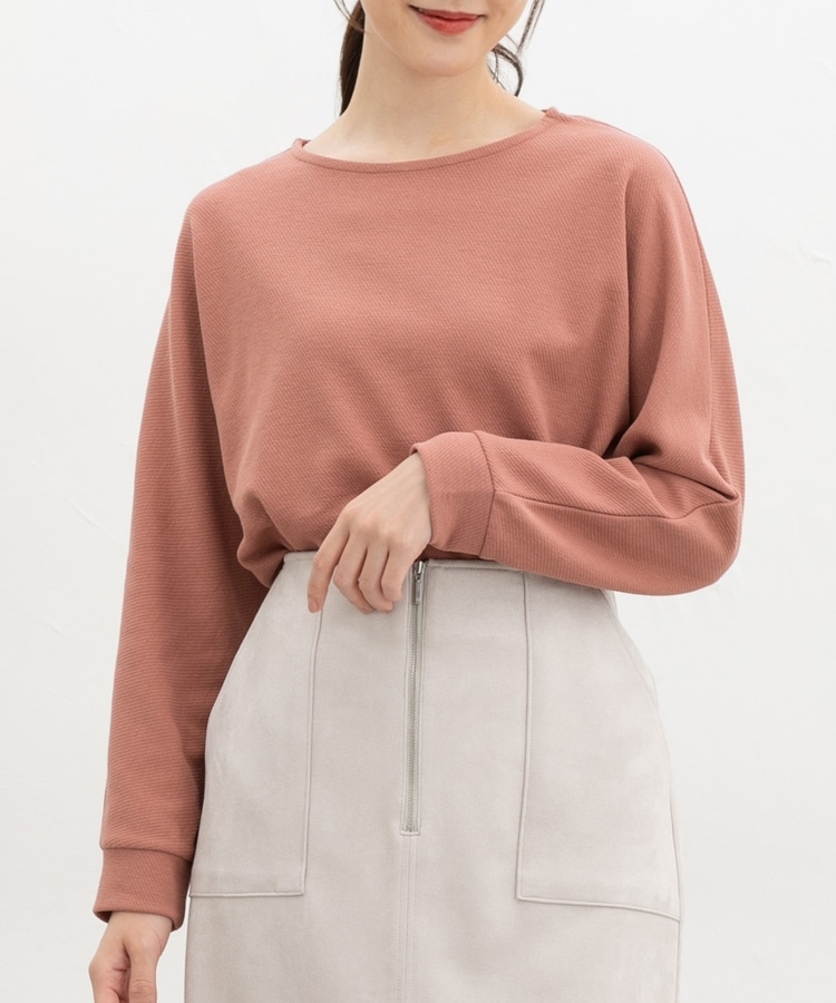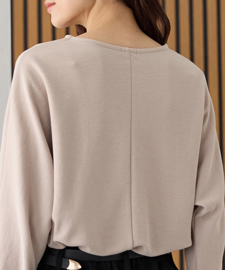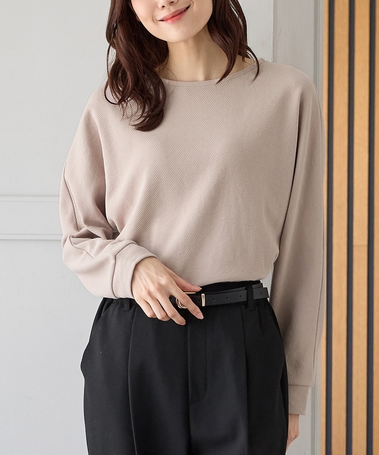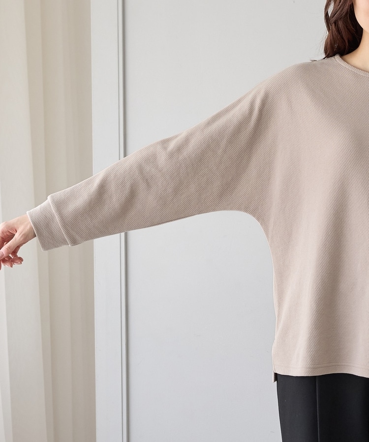 ゆったりシルエットを袖口の切り替えで引き締めた、手首のほっそり見せも叶うドルマンデザイン。