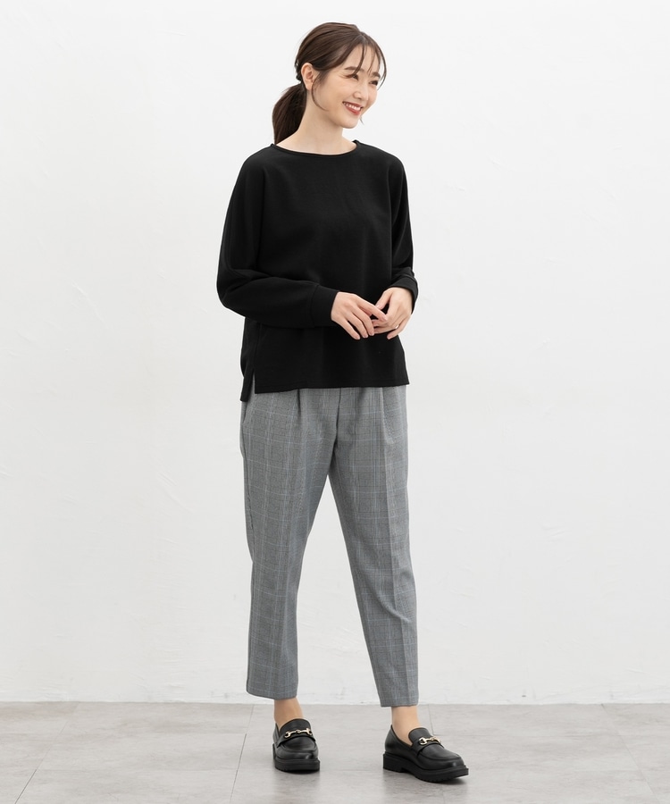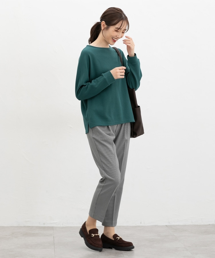 テーパードパンツなどのきれいめボトムスとも好相性。
