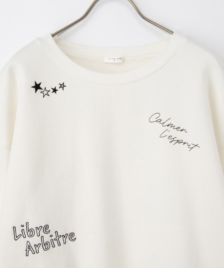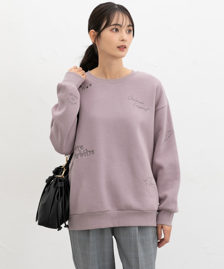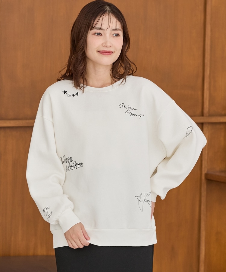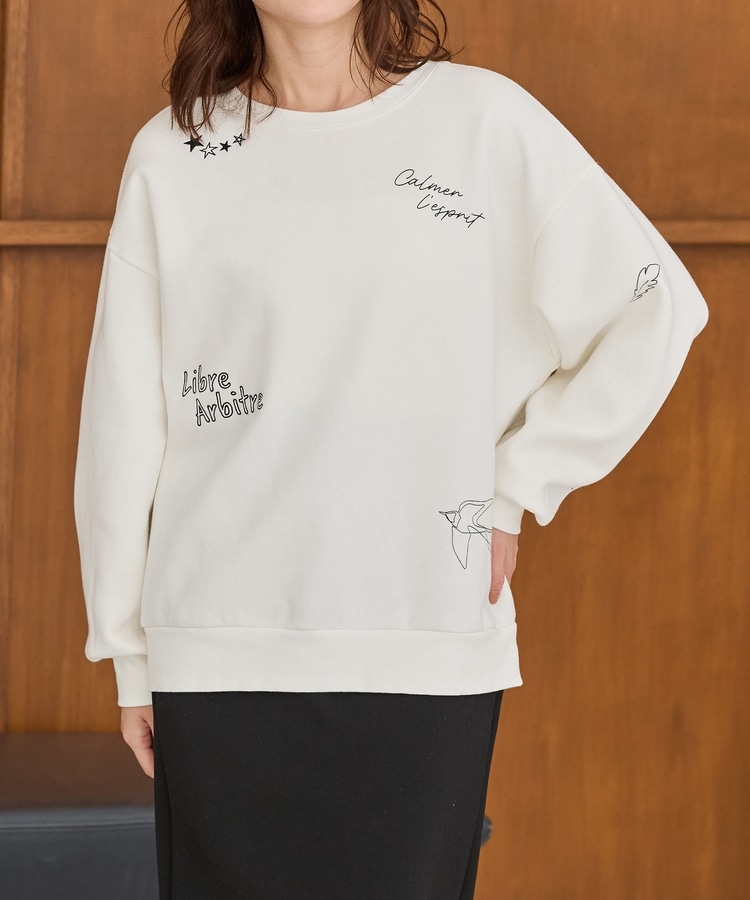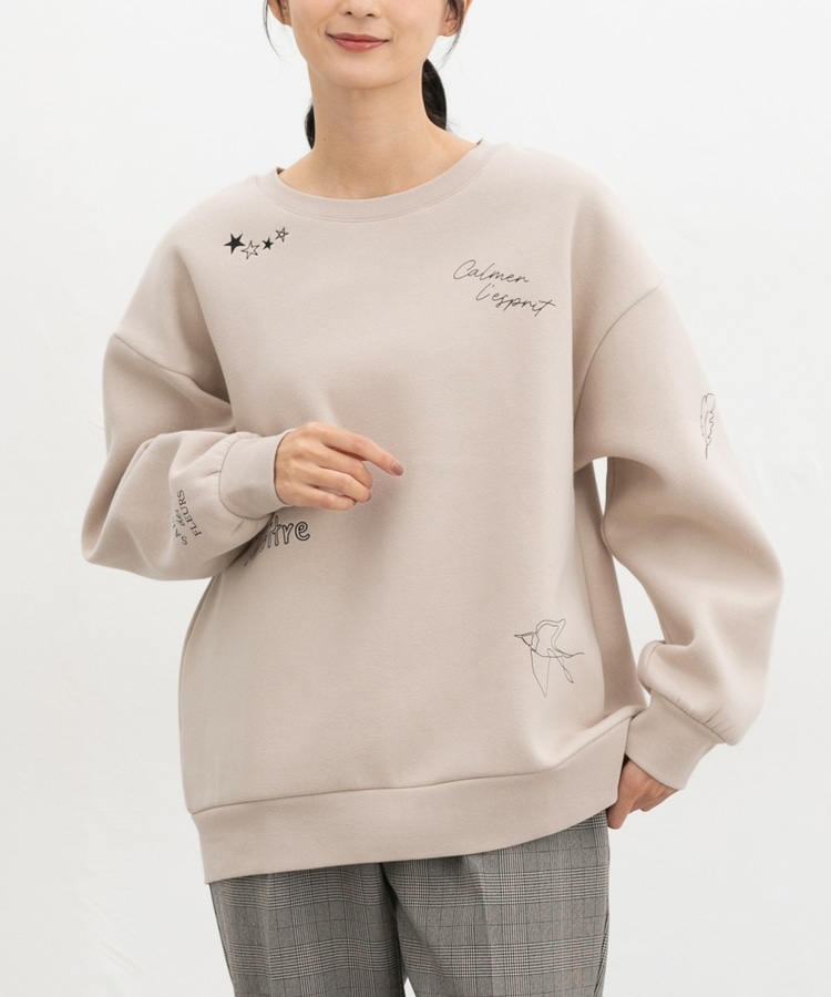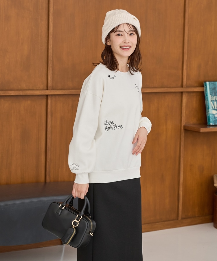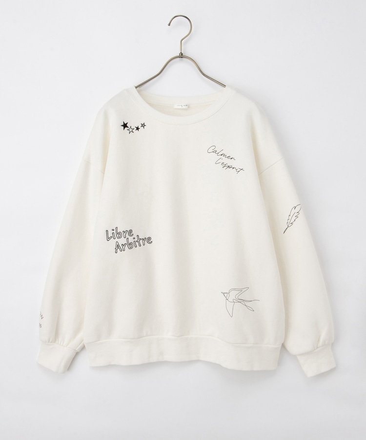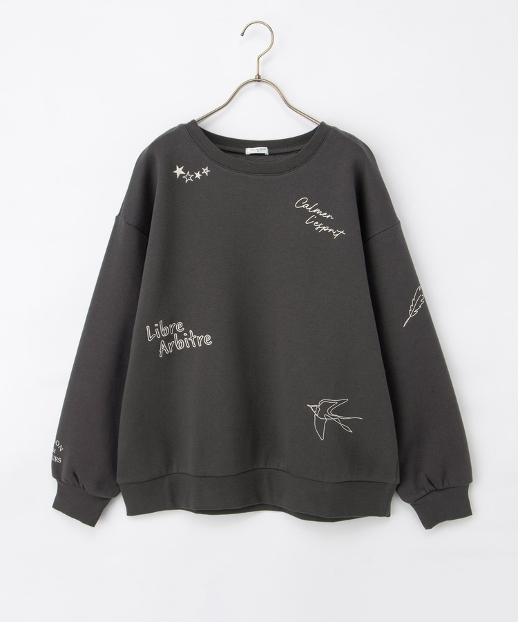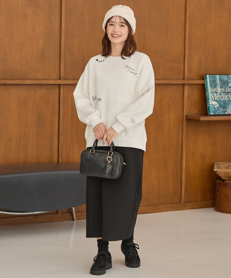 遊び心あふれる落書き風のロゴ刺繍やプリントを全体にちりばめた、今年らしいお洒落なデザイン。