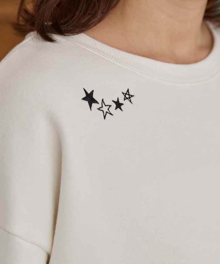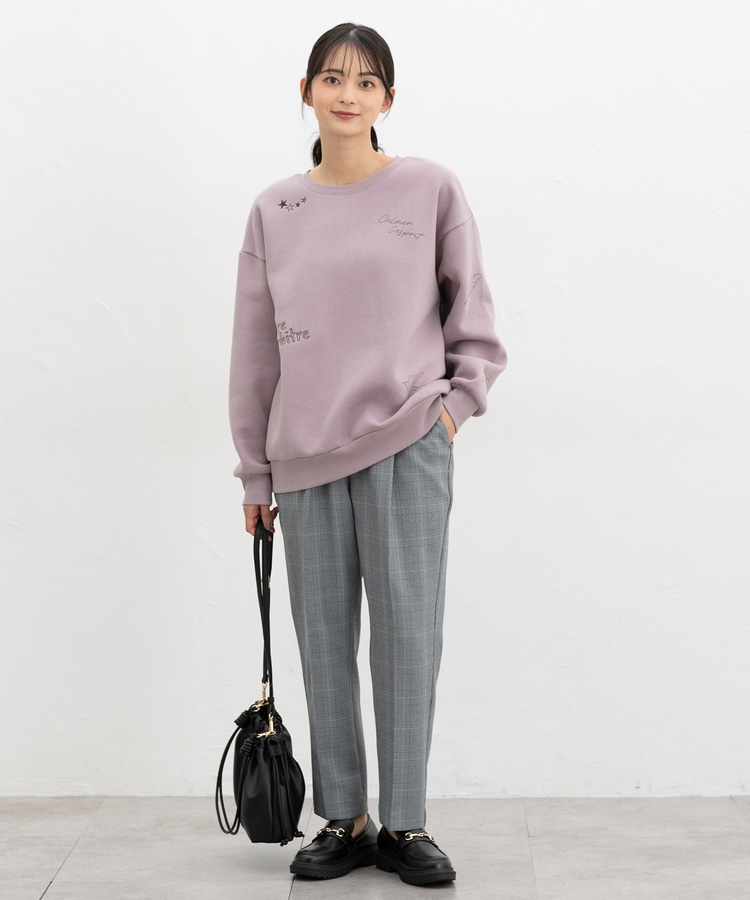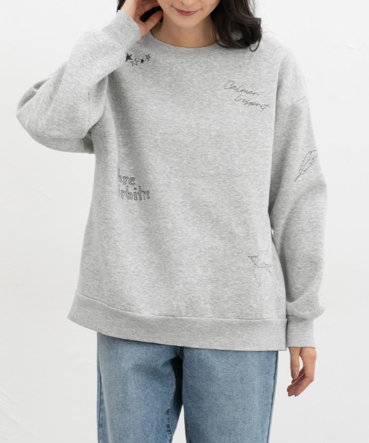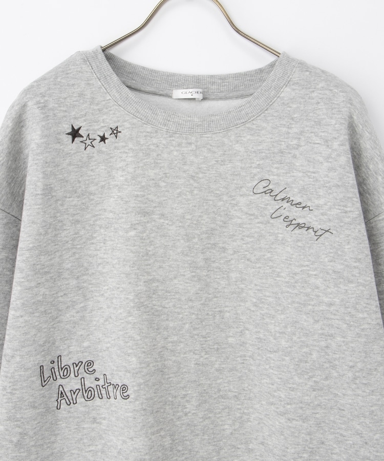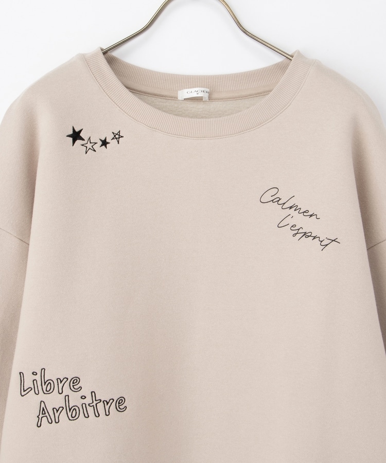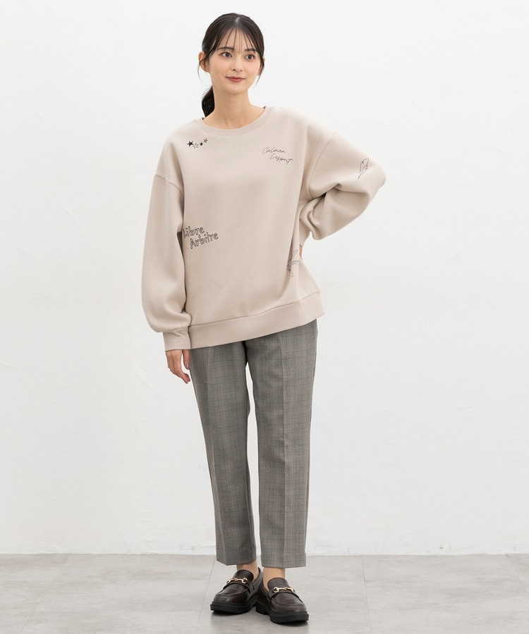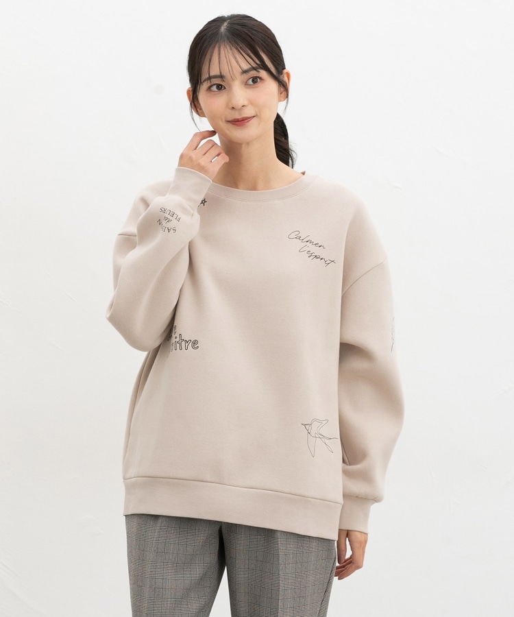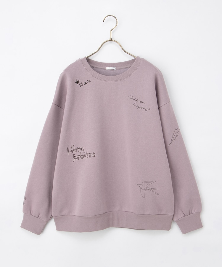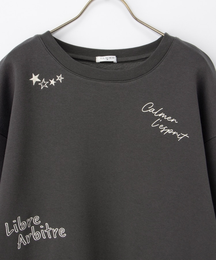 遊び心あふれる落書き風のロゴ刺繍やプリントを全体にちりばめた、今年らしいお洒落なデザイン。