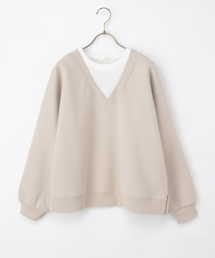 1枚でコーディネートが決まる、Tシャツ×Vネックトップスのレイヤード風デザイン。