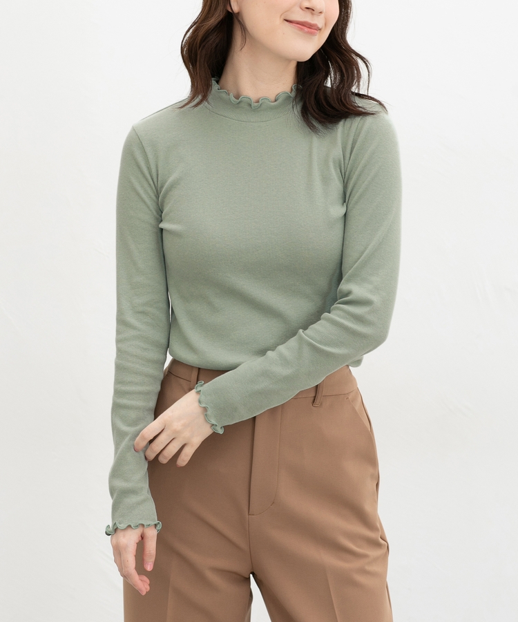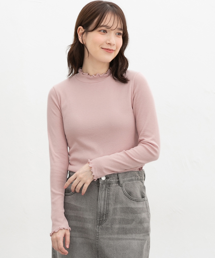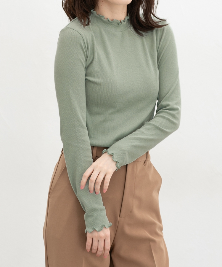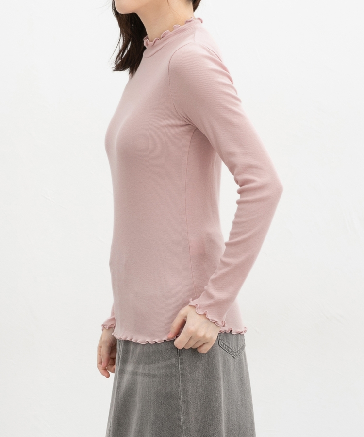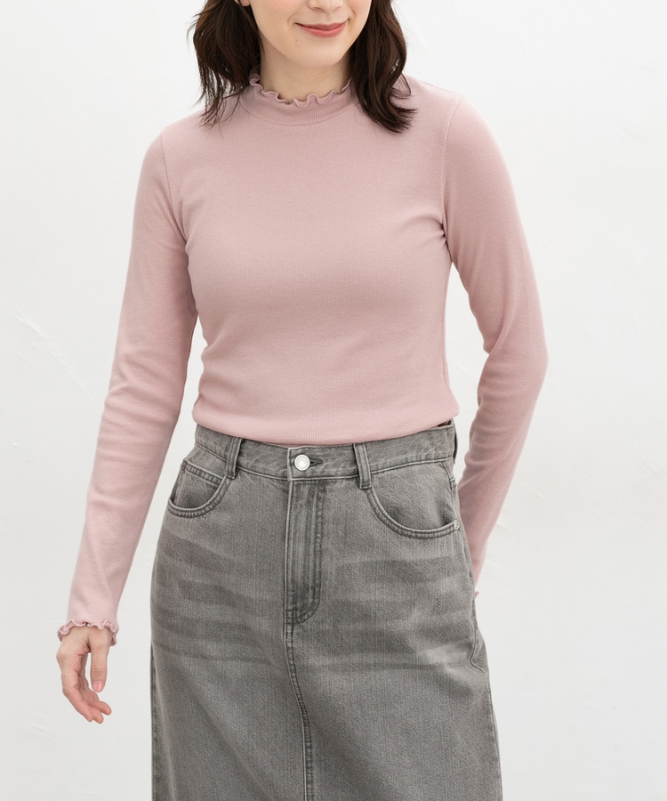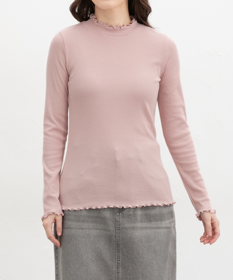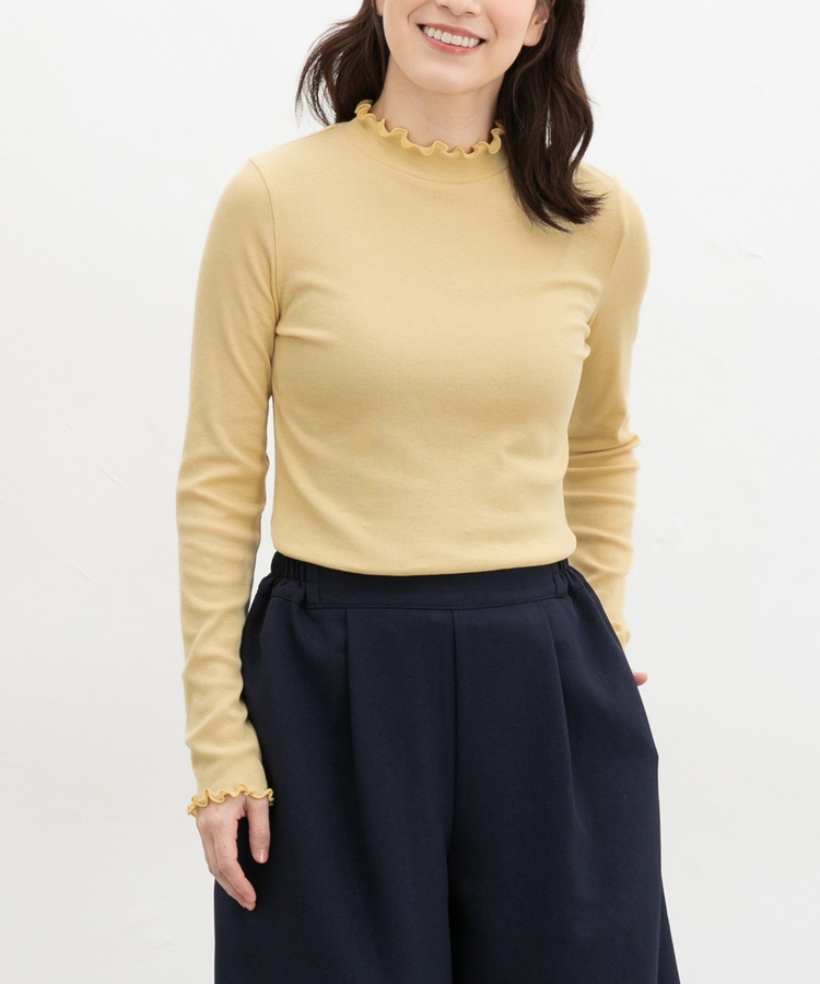 ストレッチの利いた、柔らかな綿混リブ素材。