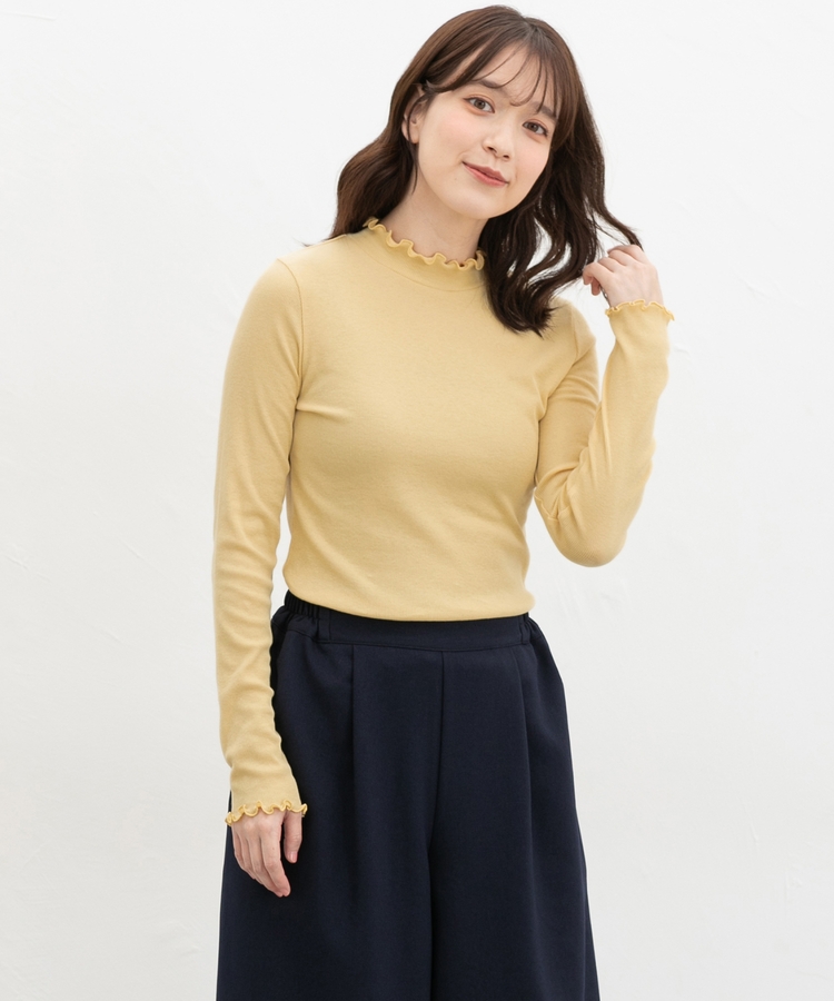 衿ぐり・裾・袖口のメローがおしゃれなシンプルデザイン。