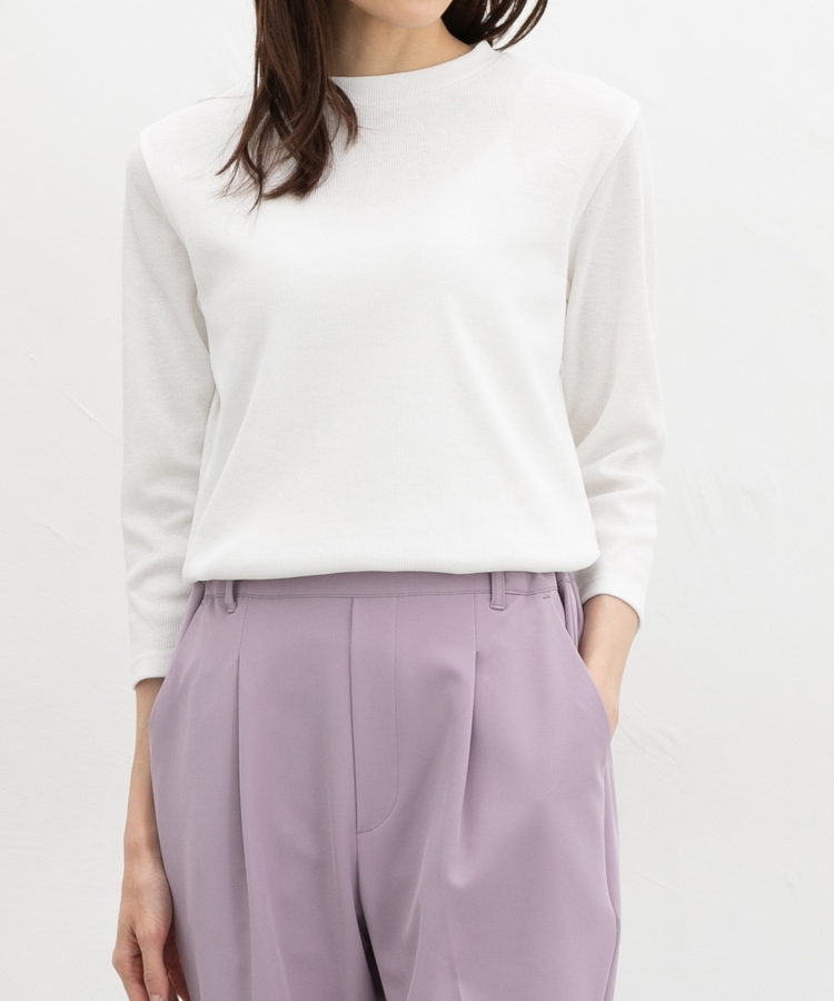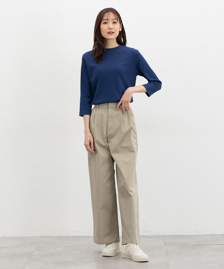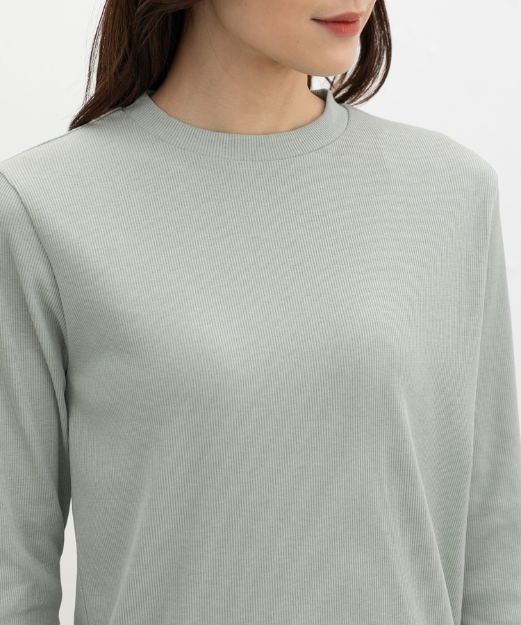 開きすぎないクルーネックのシンプルデザイン。