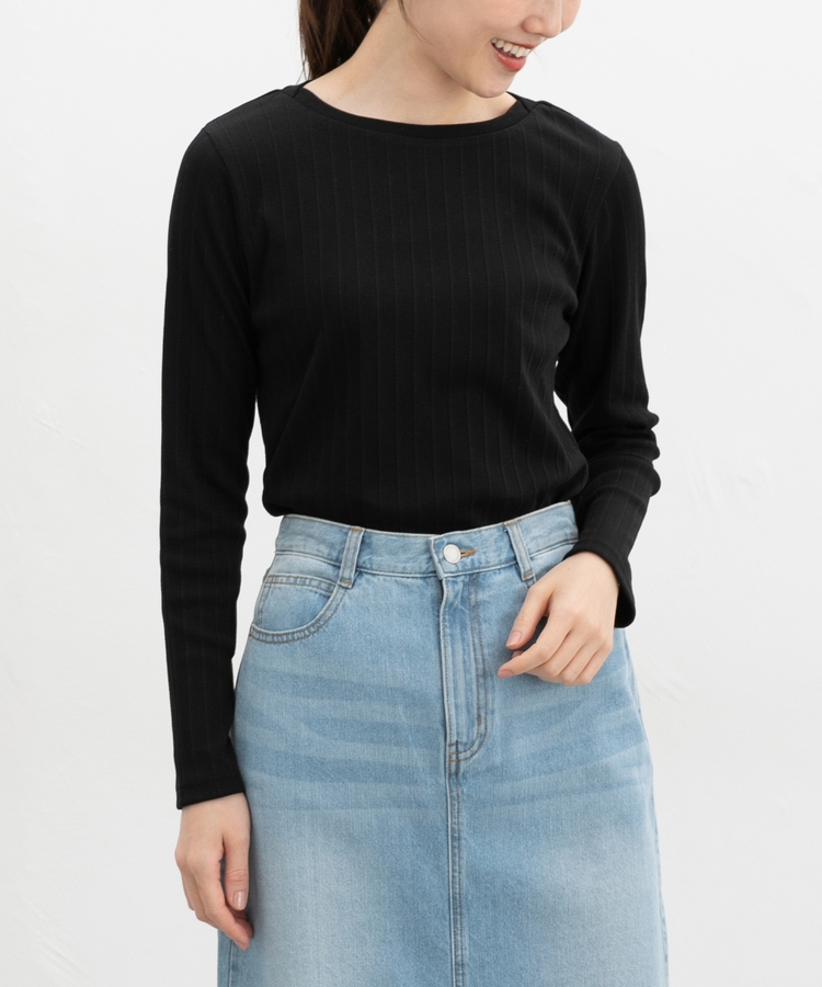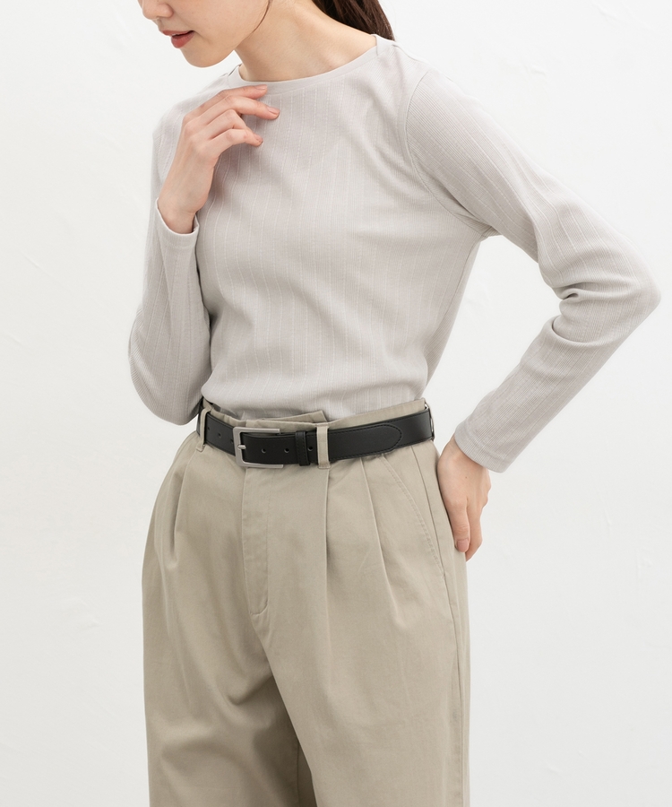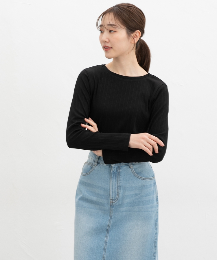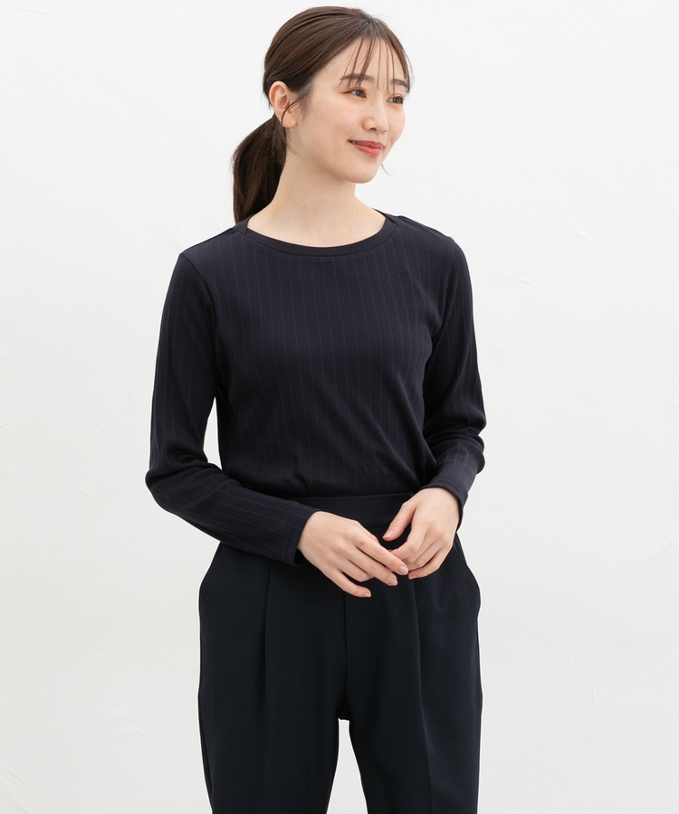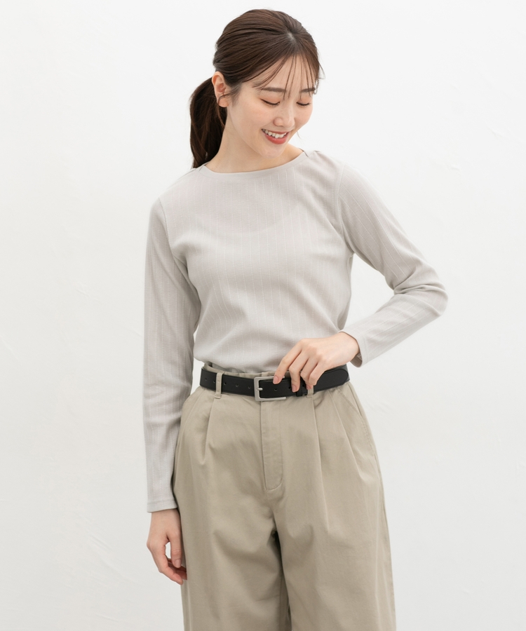 デコルテをきれいに見せるボートネックのシンプルデザイン。