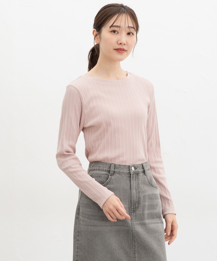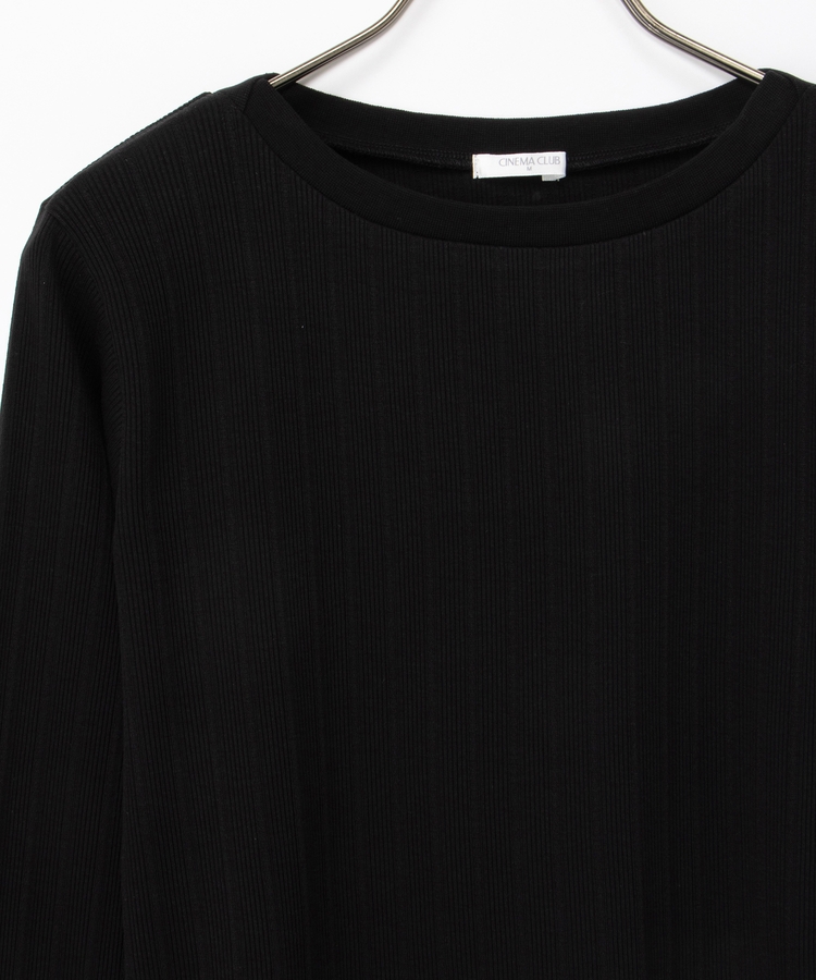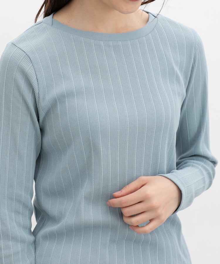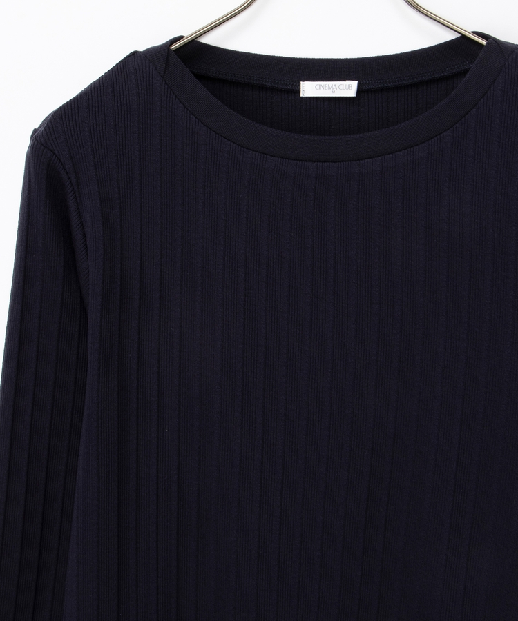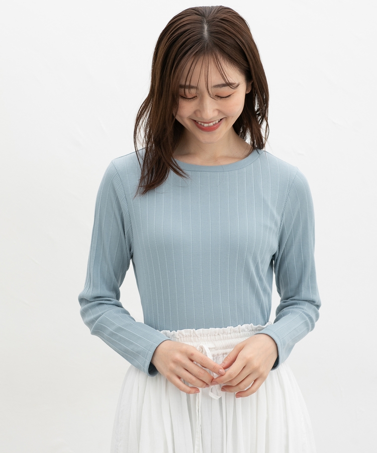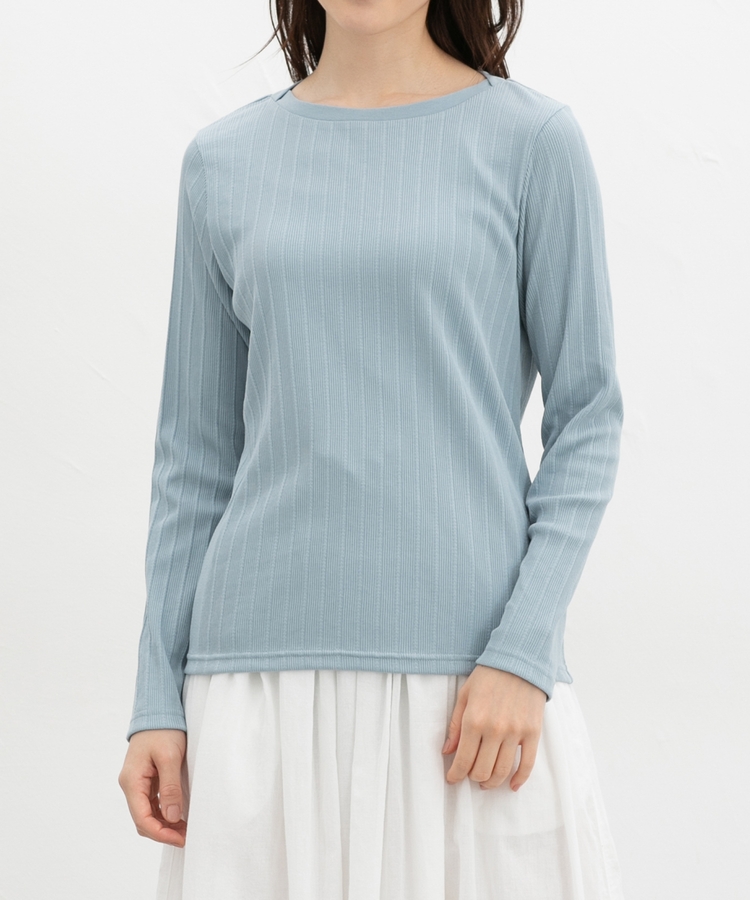 デコルテをきれいに見せるボートネックのシンプルデザイン。