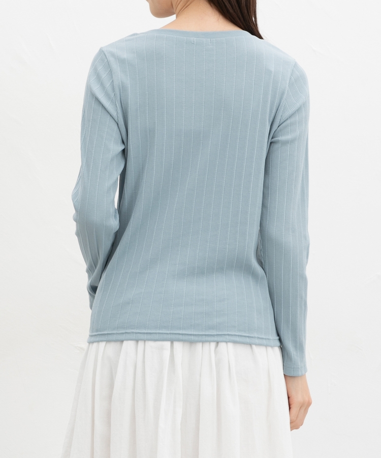 着心地がよく表面変化のある、綿混ジャカードリブ素材。