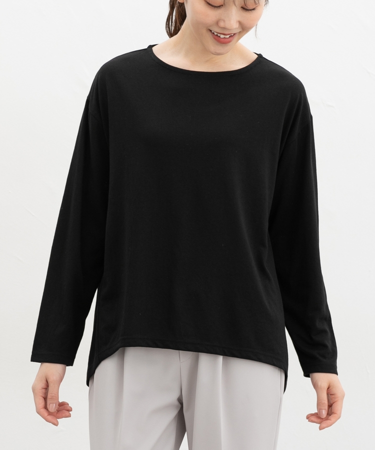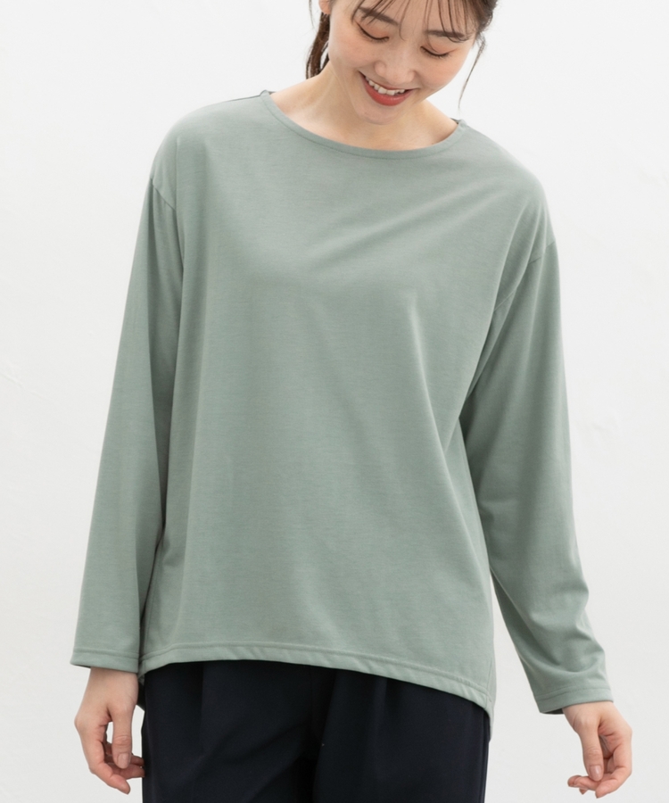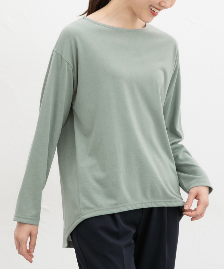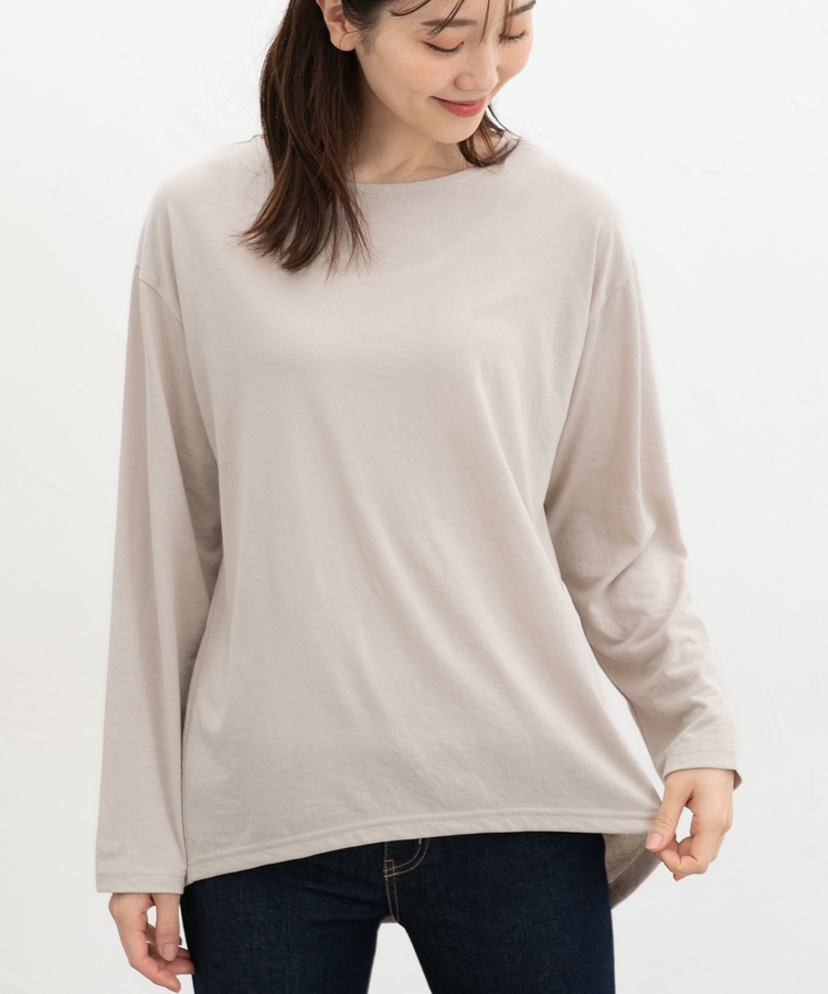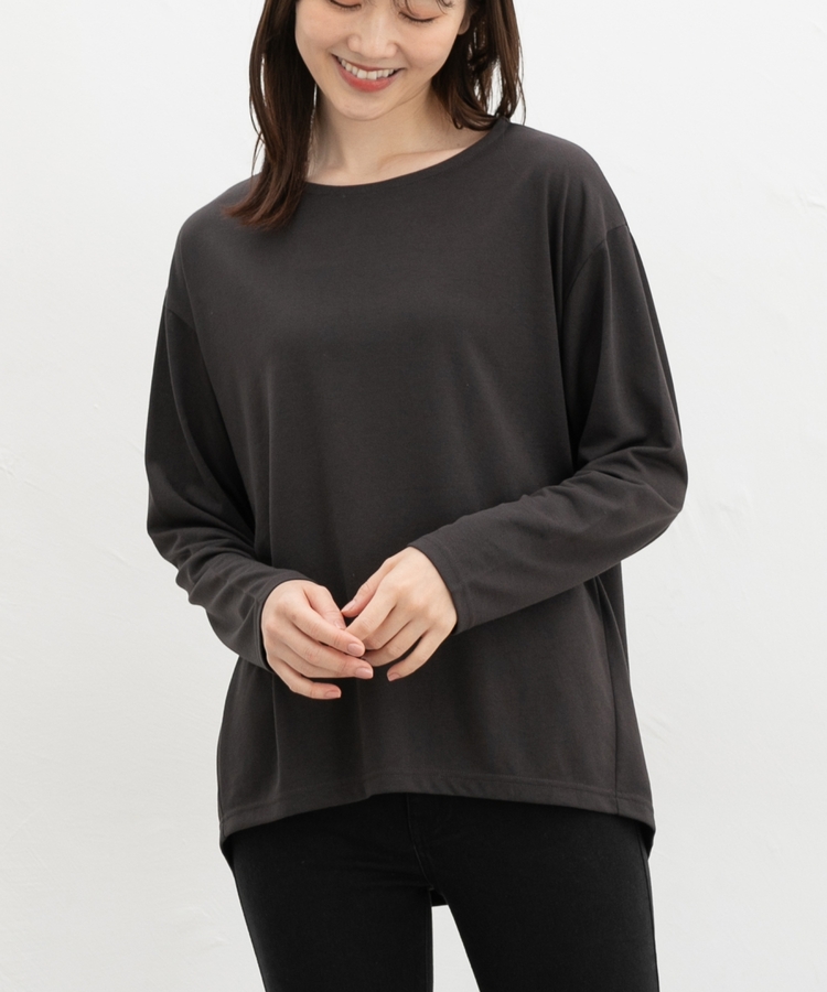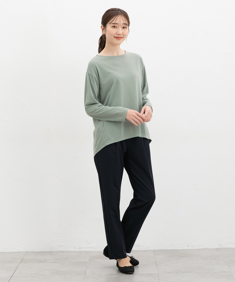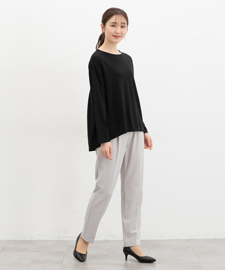 ゆったりめの幅とヒップまですっぽり隠れる丈感で気になる体型もカバー。