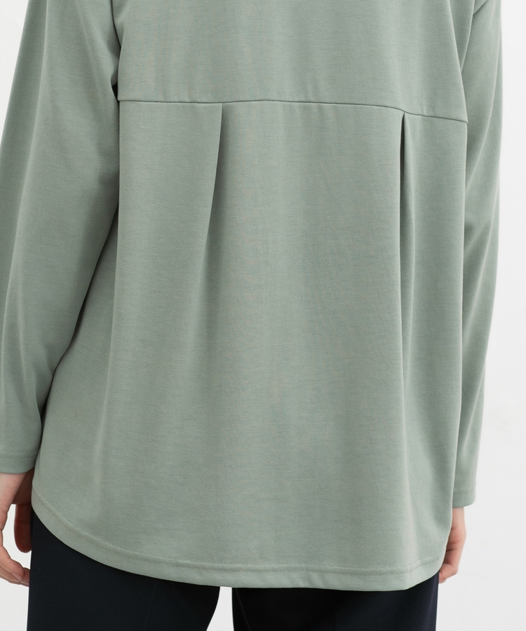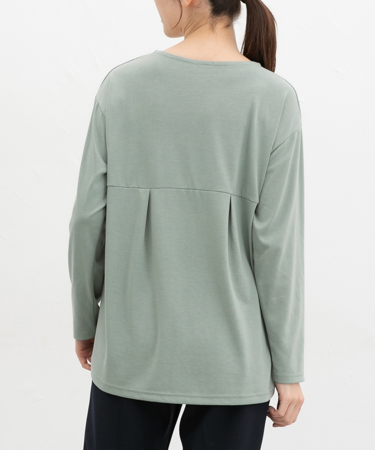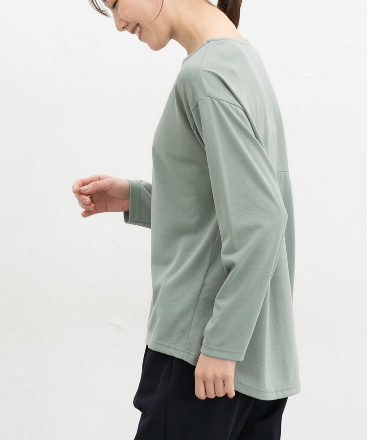 タックを入れたバック切り替えと、前寄りの絶妙なサイドライン、丸みのあるコクーンシルエットで、こなれ感のあるデザイン。