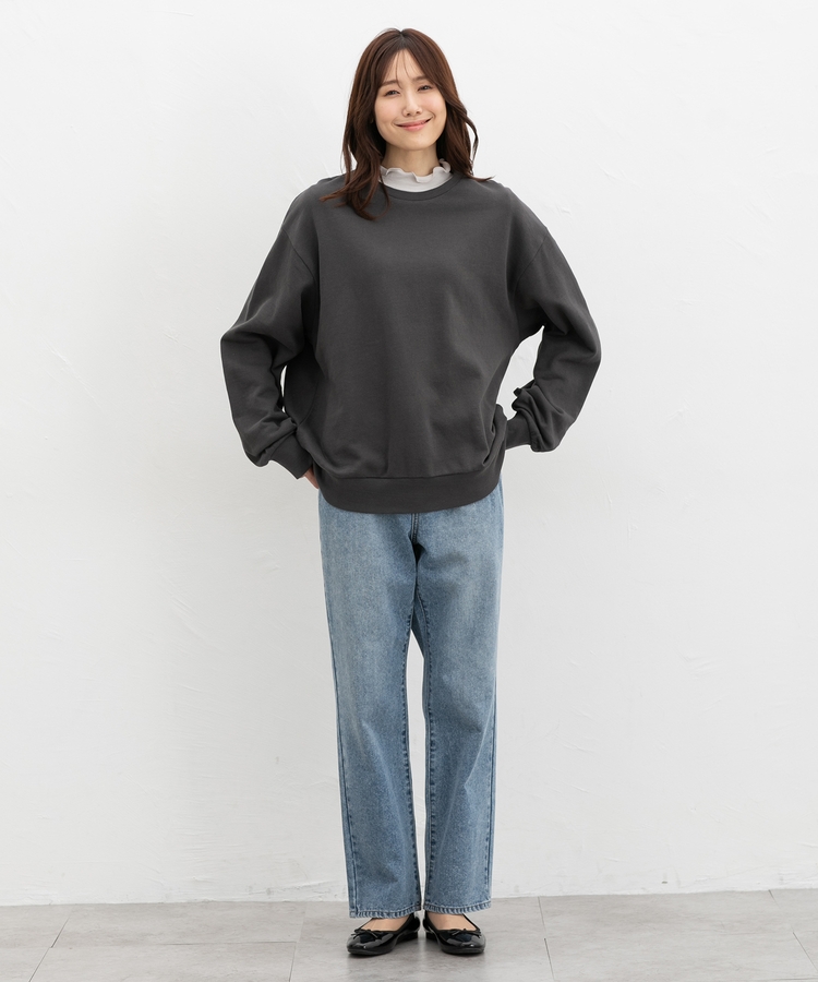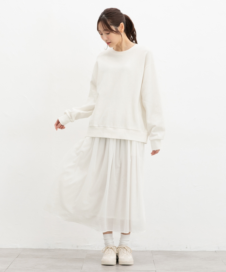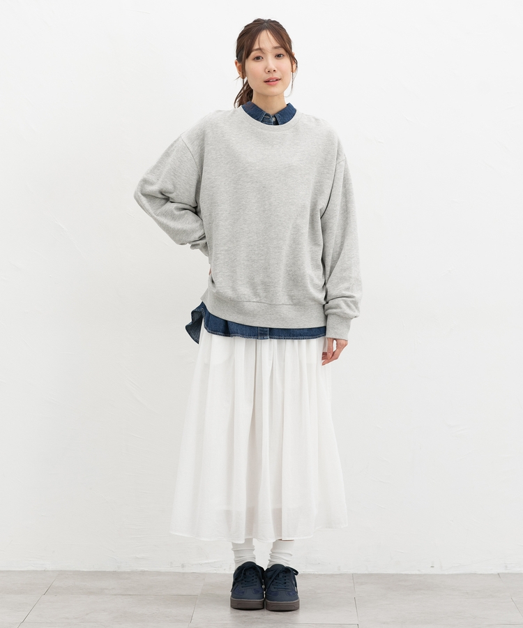 ヒップまで隠れる丈感のゆったりシルエットでこなれた印象に。