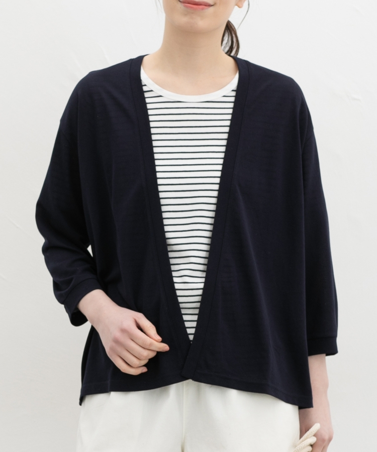 さっと羽織れるボタンレスのシンプルデザイン。
