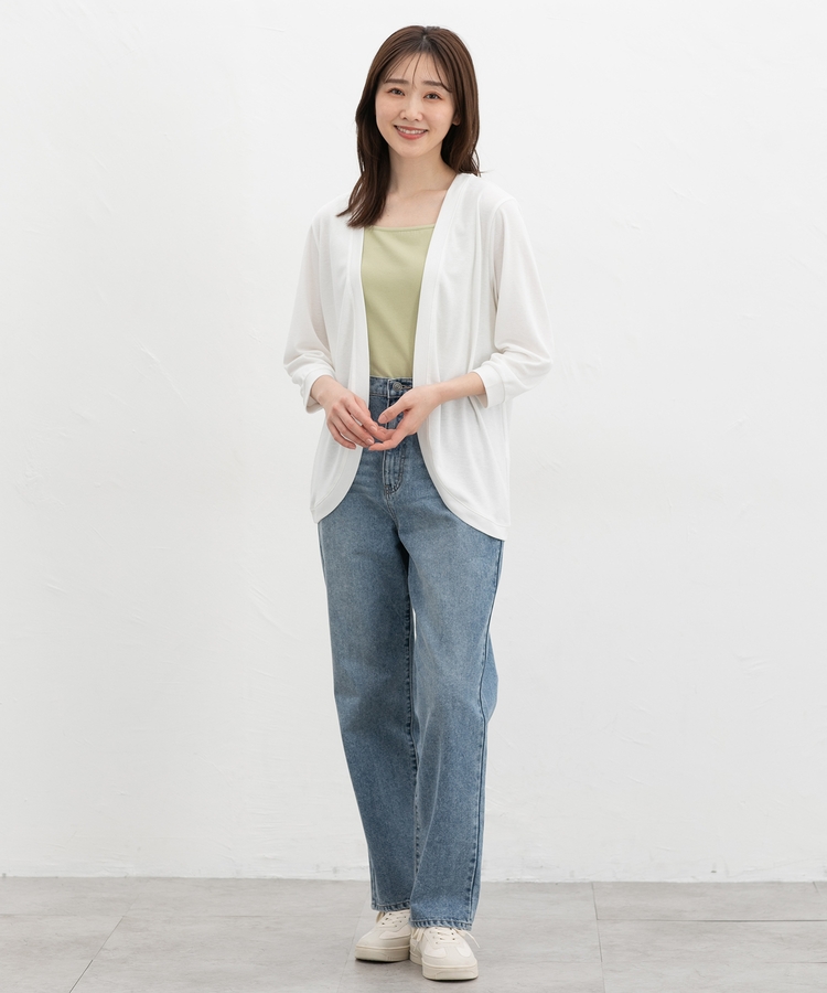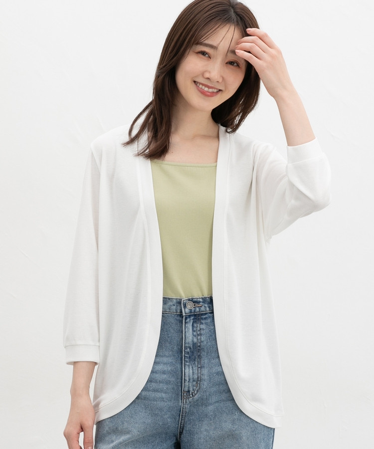 さっと羽織れるボタンレスのシンプルデザイン。