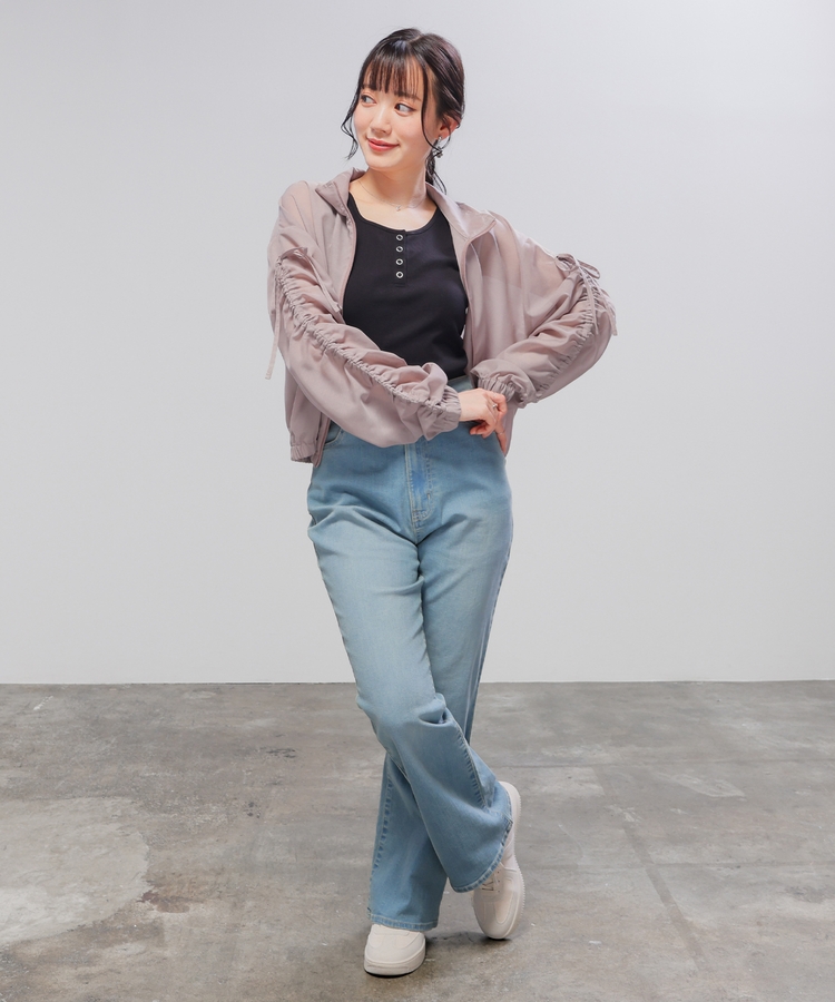 短め丈のすっきりシルエットと縦目のラインで、細見え効果も◎