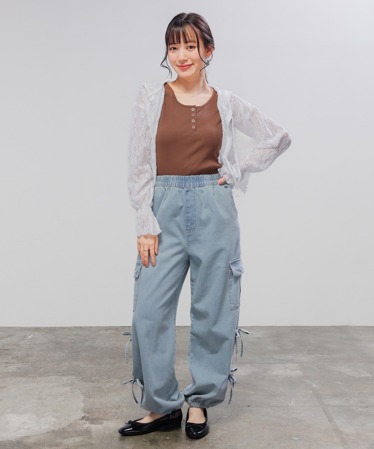 シアーシャツやニットカーデなど、透け感のあるアイテムと合わせれば今年らしいスタイルに♪
