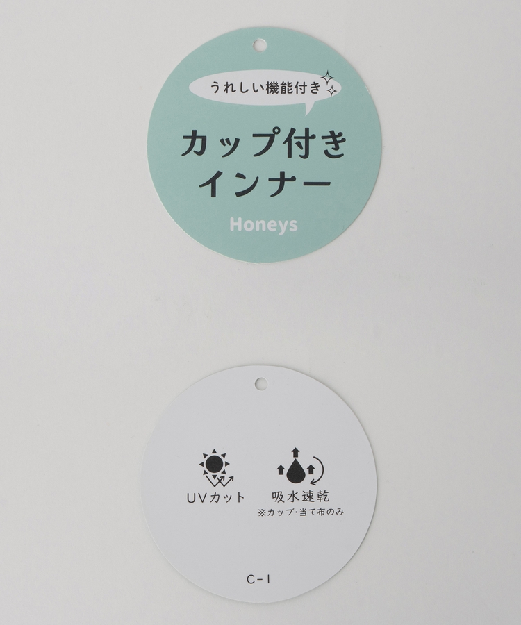 表地は紫外線対策ができる『UVカット』、カップ部分は素早く汗を吸収して乾きやすい『吸水速乾』の機能付き。